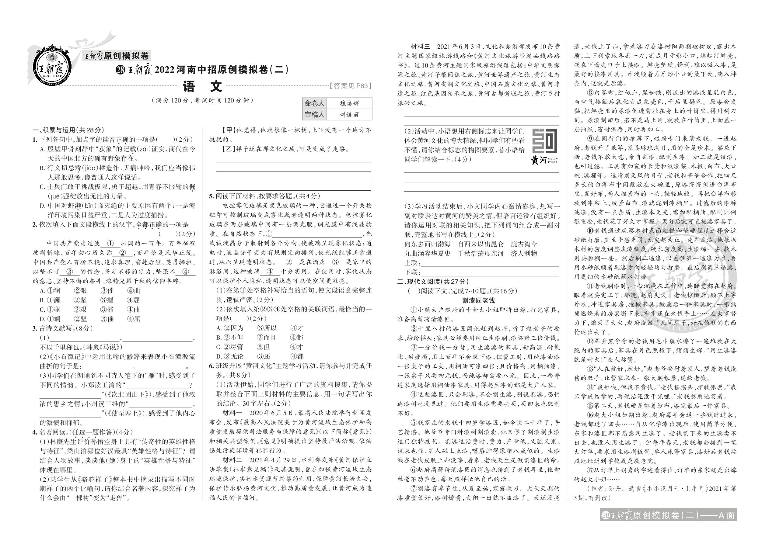 王朝霞2022河南中招原创模拟卷(二)·语文【28】