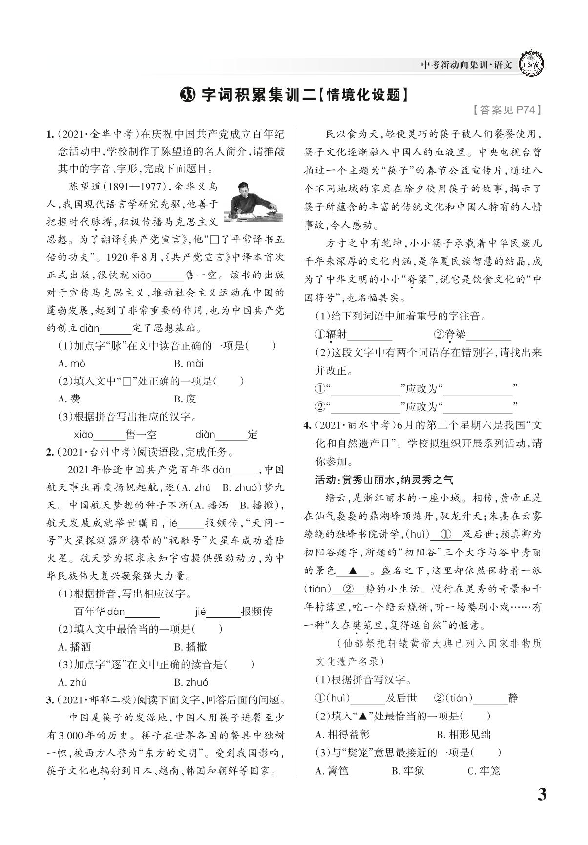 中考语文新动向集训——字词积累集训二【情境化设题】【33】