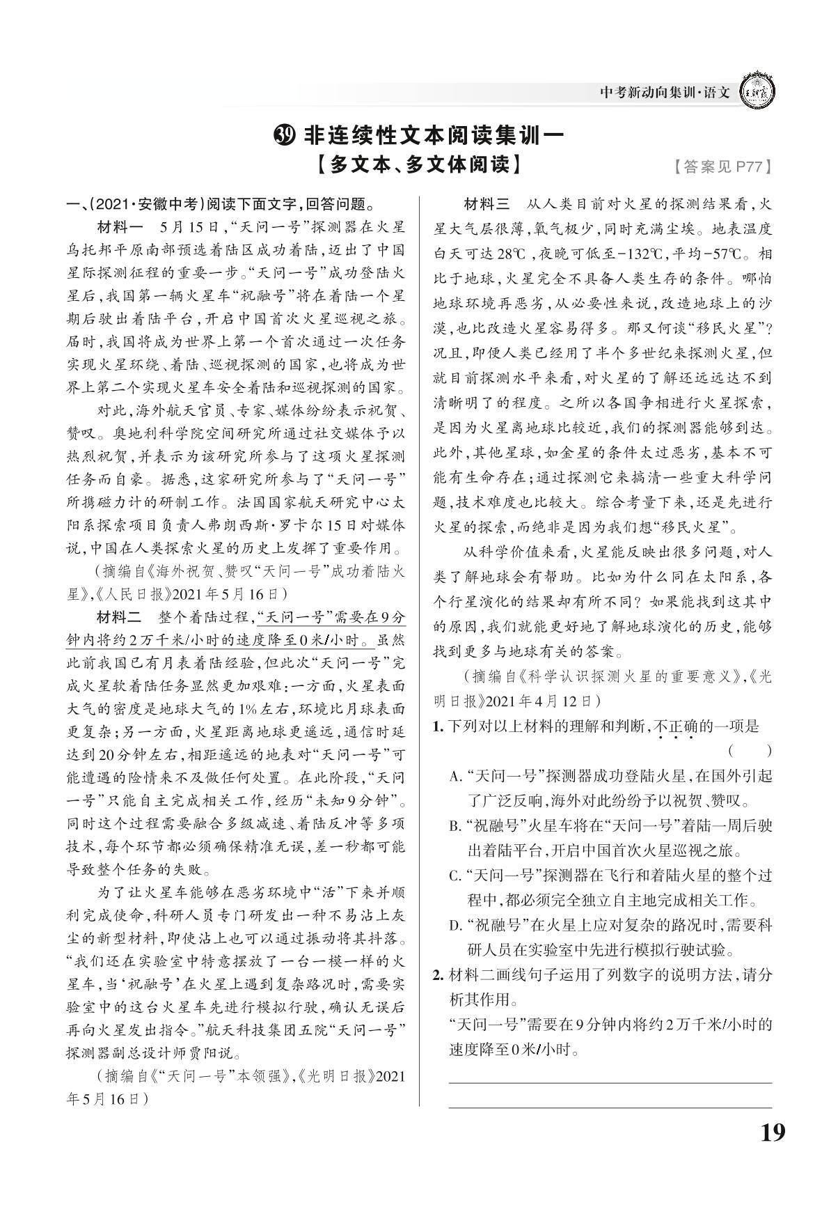 中考语文新动向集训——非连续性文本阅读集训一【多文本、多文体阅读】【39】