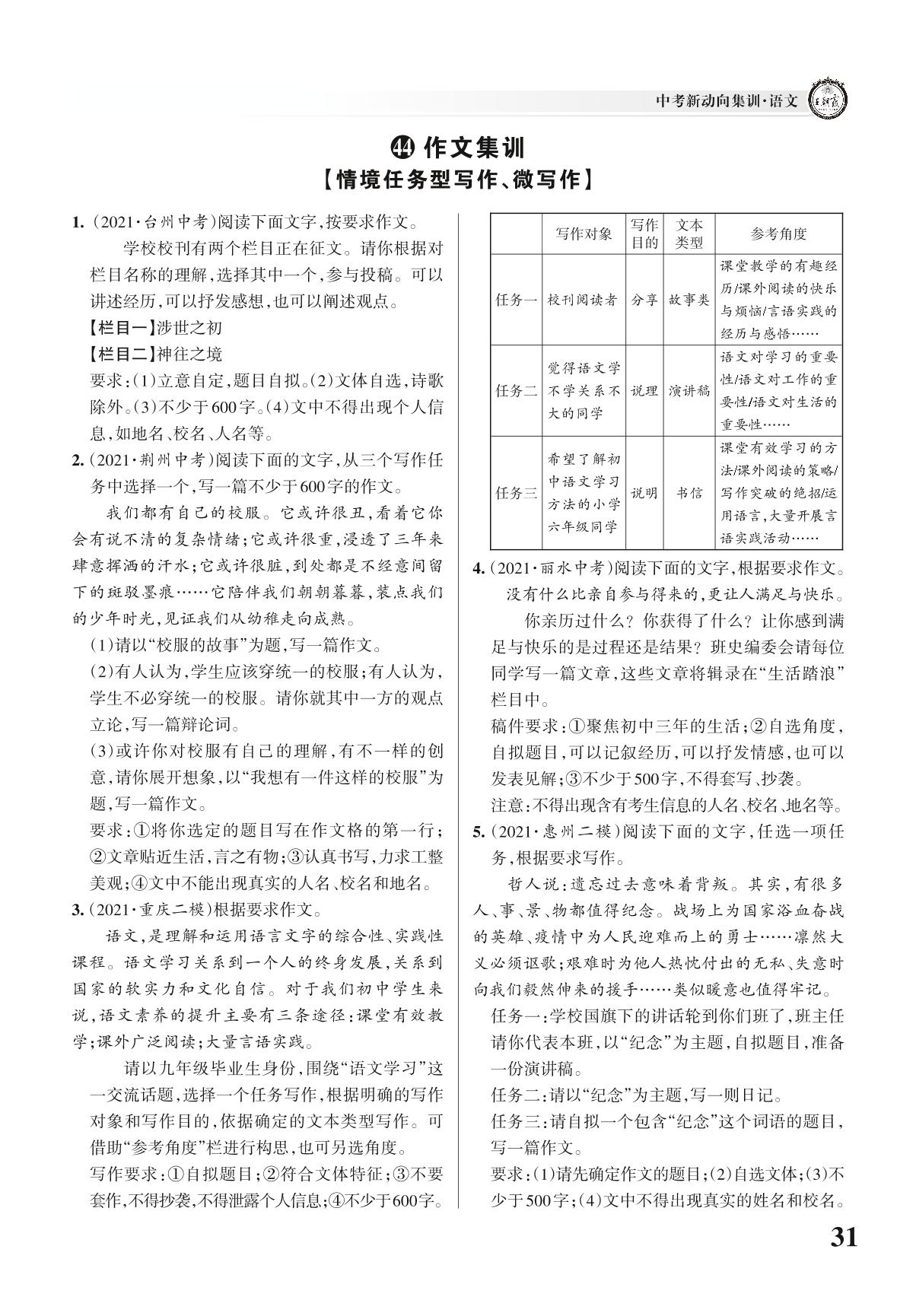 中考语文新动向集训——作文集训【情境任务型写作、微写作】【44】