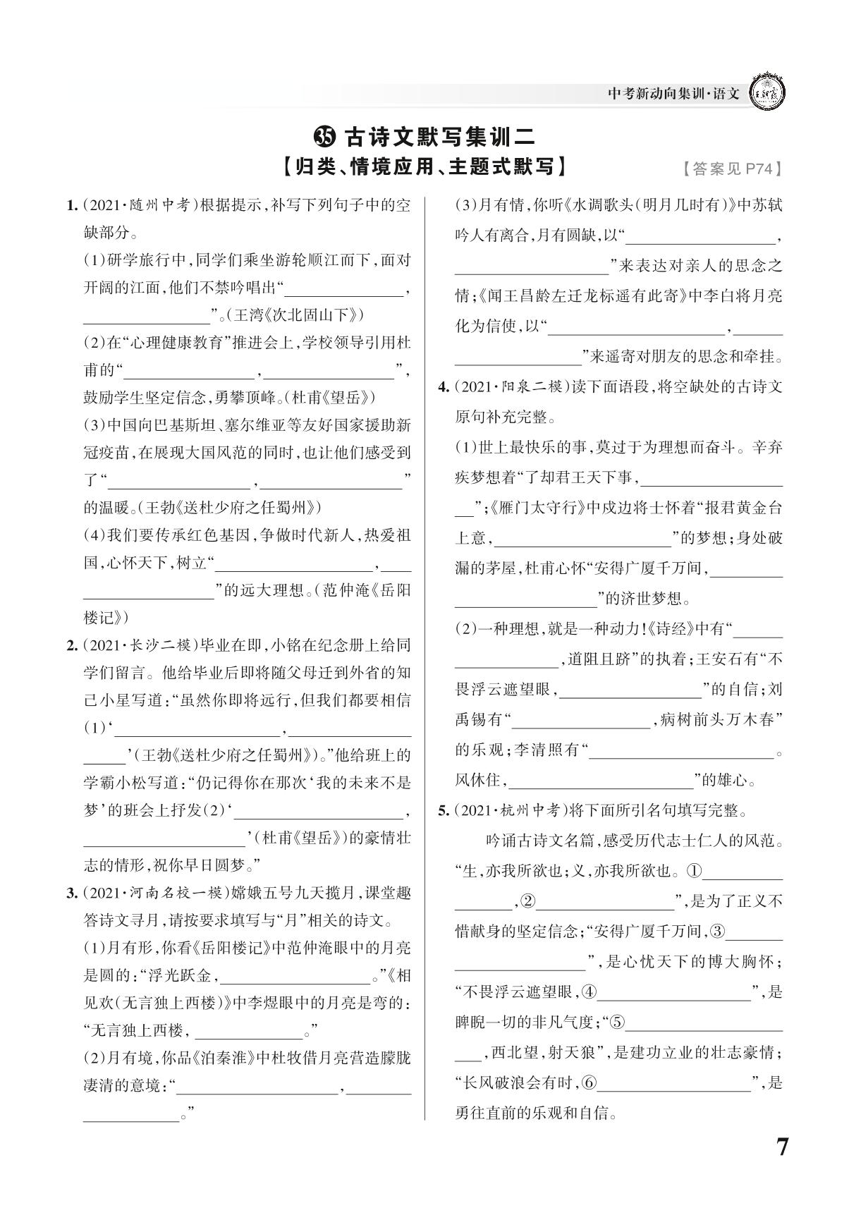 中考语文新动向集训——古诗文默写集训二【归类、情境应用、主题式默写】【35】