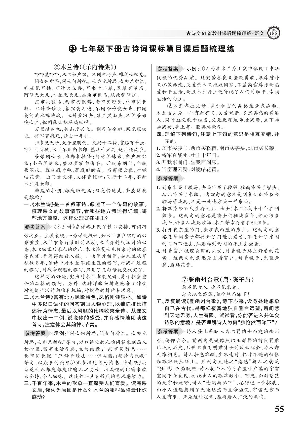 中考语文古诗词部分——七年级下册古诗词课标篇目课后题梳理练【52】