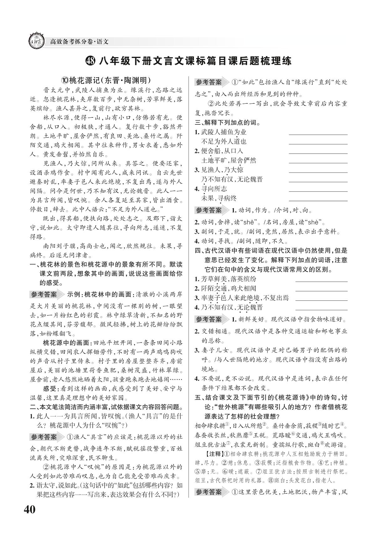 中考语文文言文部分——八年级下册文言文课标篇目课后题梳理练【48】