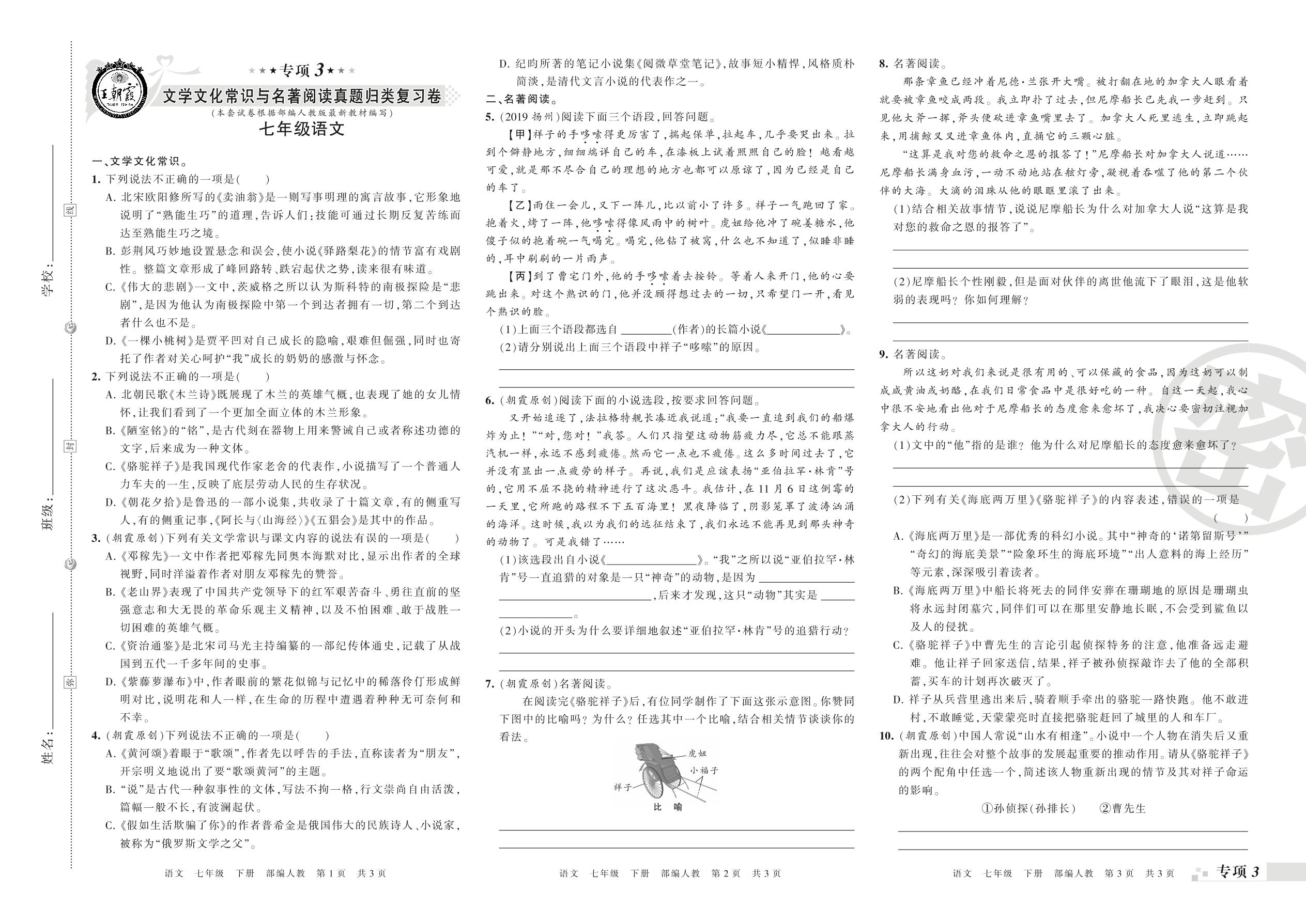 王朝霞期末专项卷——文学文化常识与名著阅读、综合性学习真题归类复习卷七年级下册语文(人教版)_R21080224628【0】