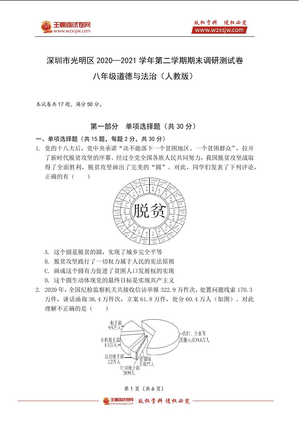 深圳市光明区2020—2021学年第二学期期末调研测试卷八年级道德与法治(人教版)