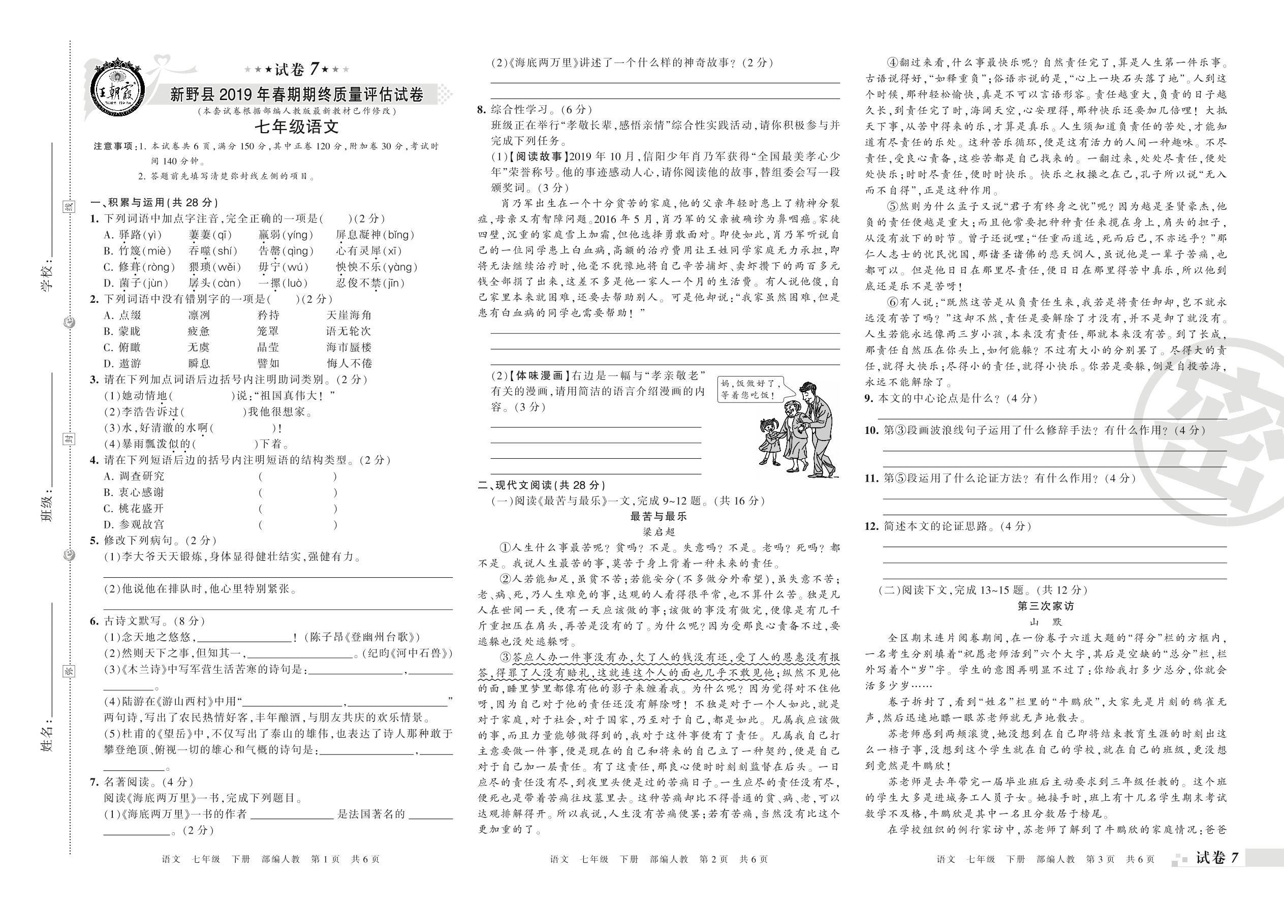 七年级语文人教版下册期末卷