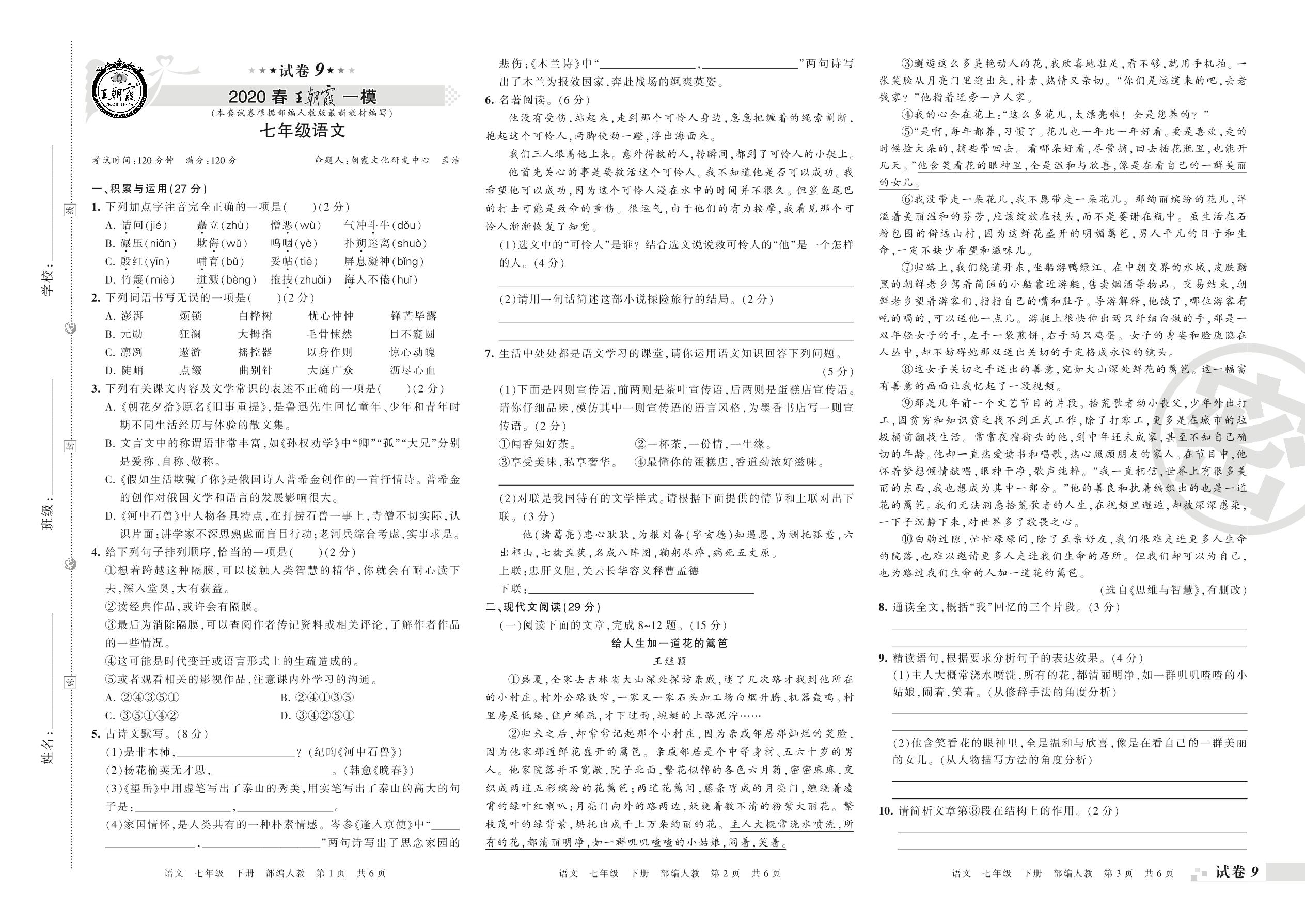 王朝霞期末模拟卷七年级下册语文(人教版)_R21080224812【9】
