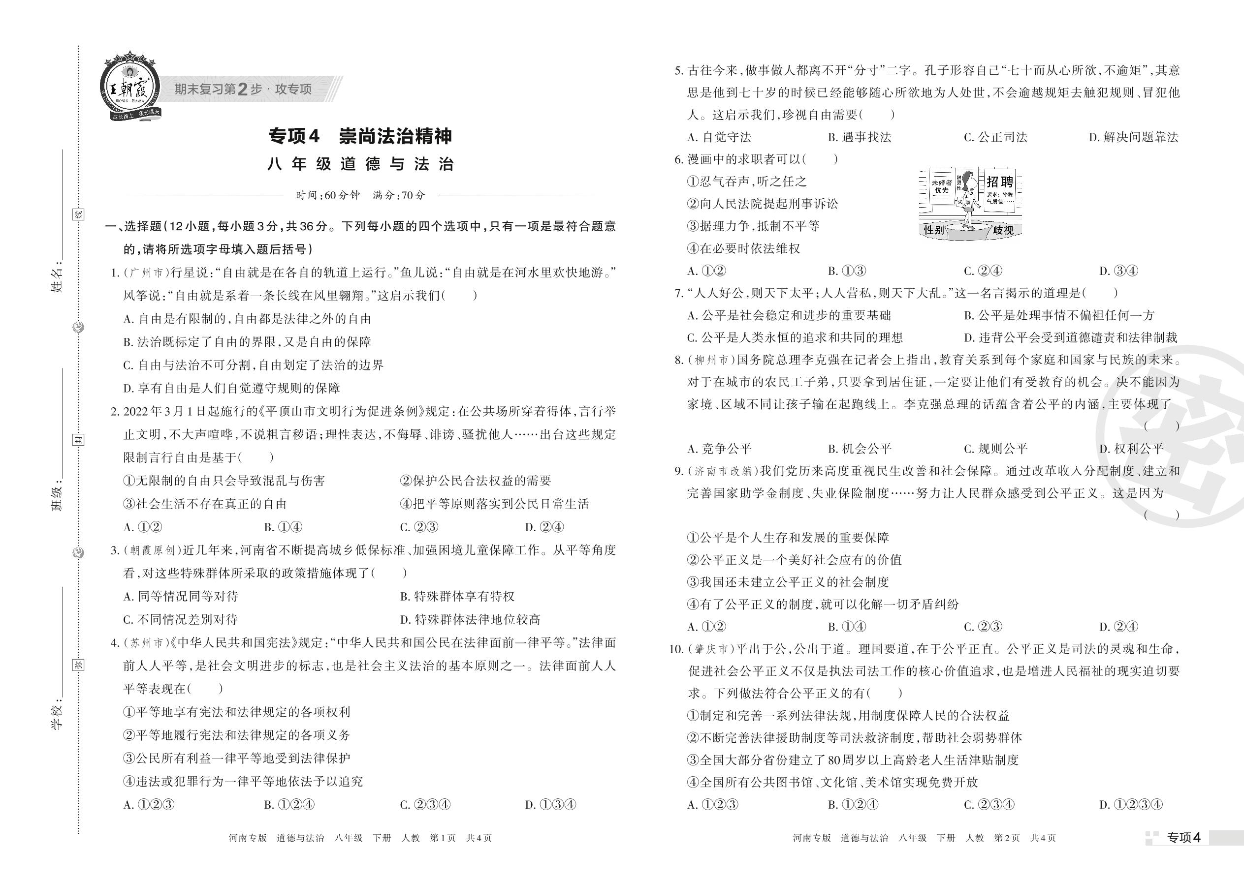 王朝霞期末专项卷——崇尚法治精神八年级下册道德与法治(人教版)_R220423171300315【4】