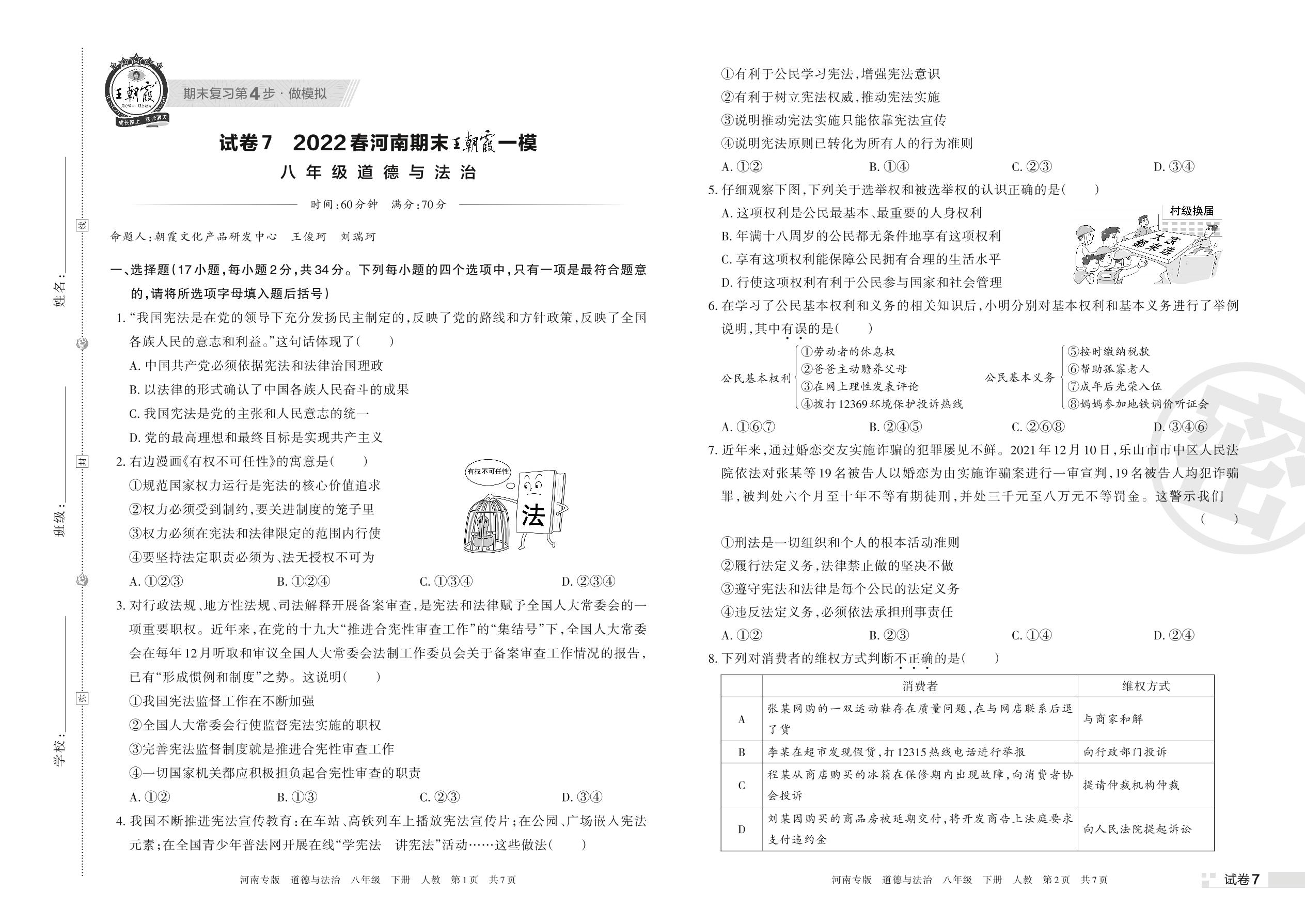 王朝霞期末模拟卷八年级下册道德与法治(人教版)_R220423171301316【7】