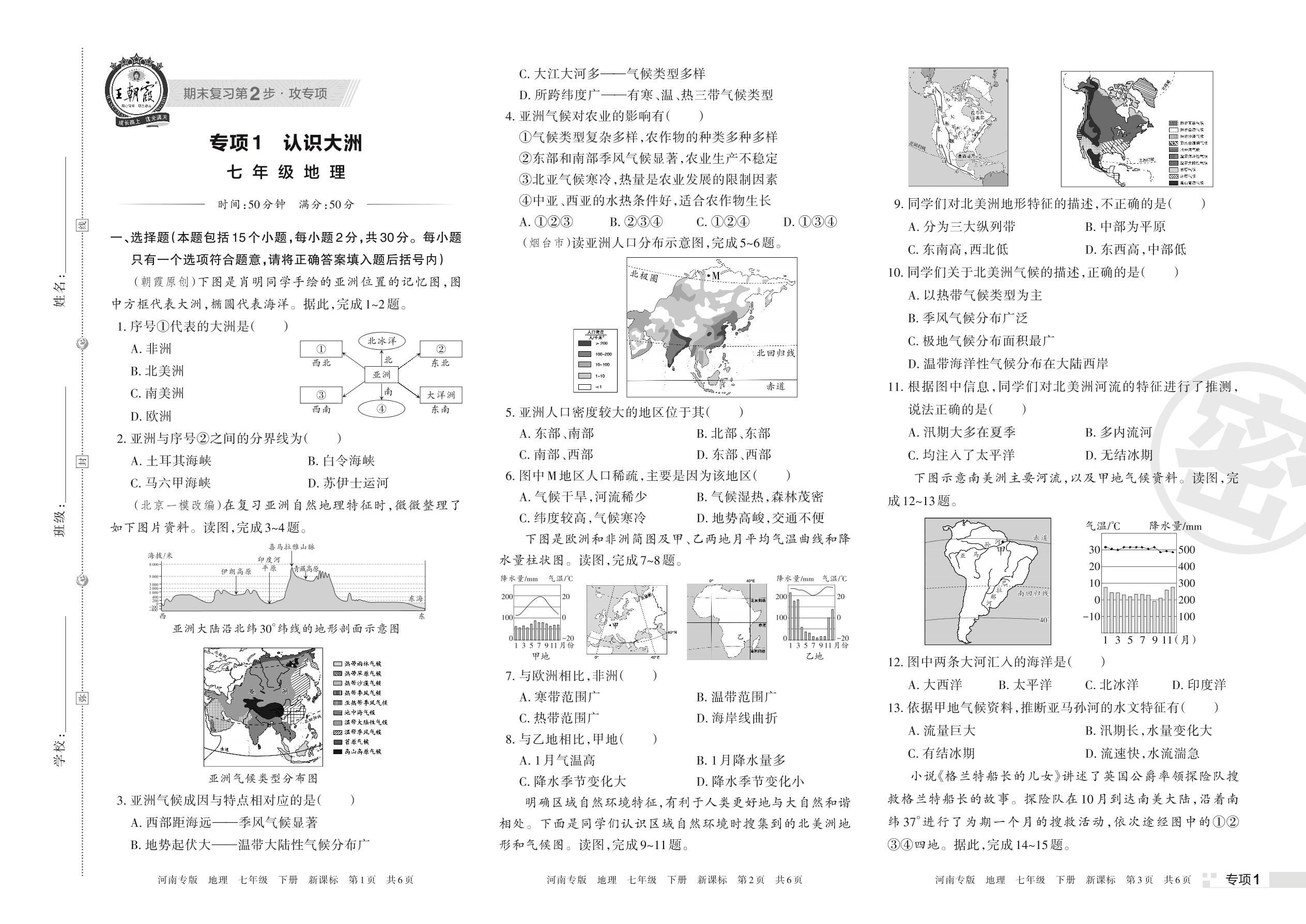 王朝霞期末专项卷——认识大洲七年级下册地理(新课标)【1】