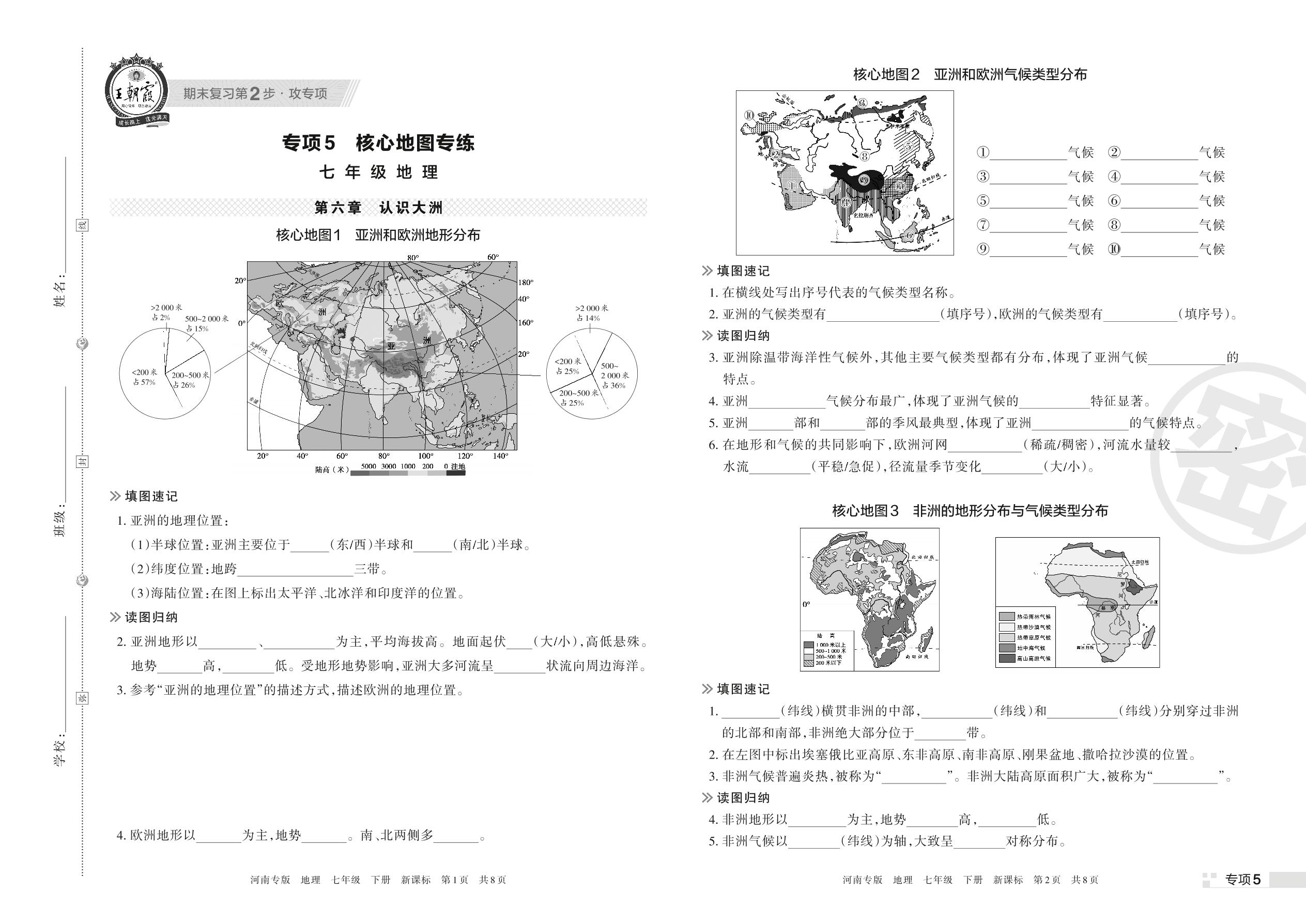王朝霞期末专项卷——核心地图专练七年级下册地理(新课标)【5】