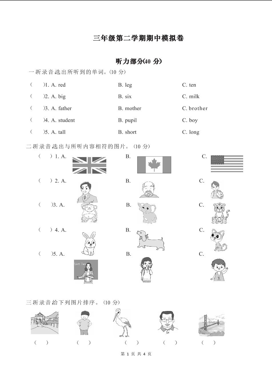 2020-2021学年第二学期期中考试模拟卷三年级英语(PEP版)【无听力音频】