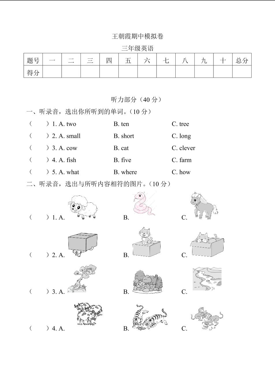 2020-2021学年第二学期期中考试模拟卷三年级英语(冀教版)【无听力音频】