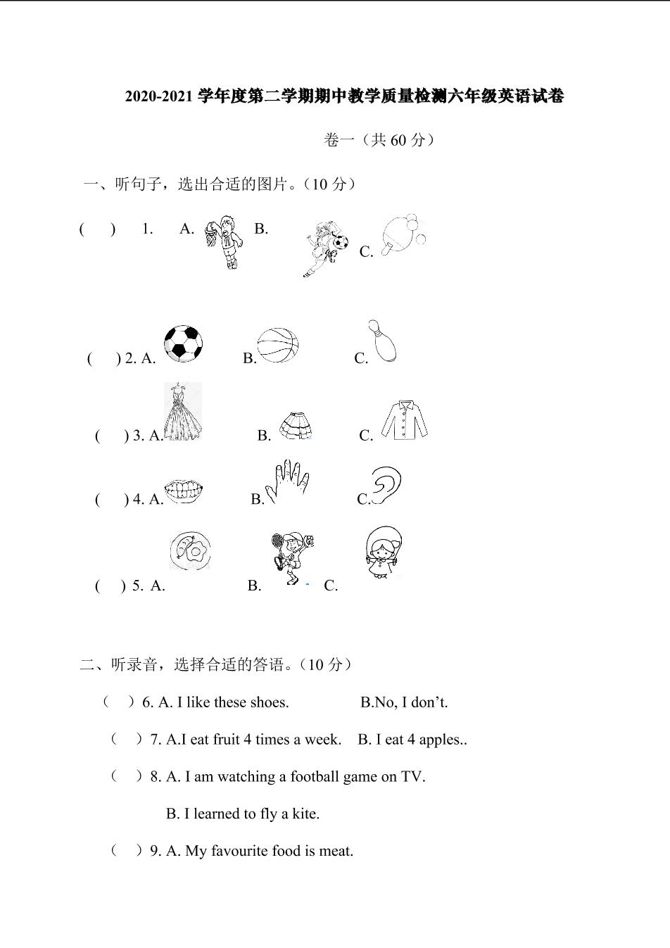 河北省石家庄市正定县2020-2021学年第二学期期中考试模拟卷六年级英语(冀教版)【无听力音频】