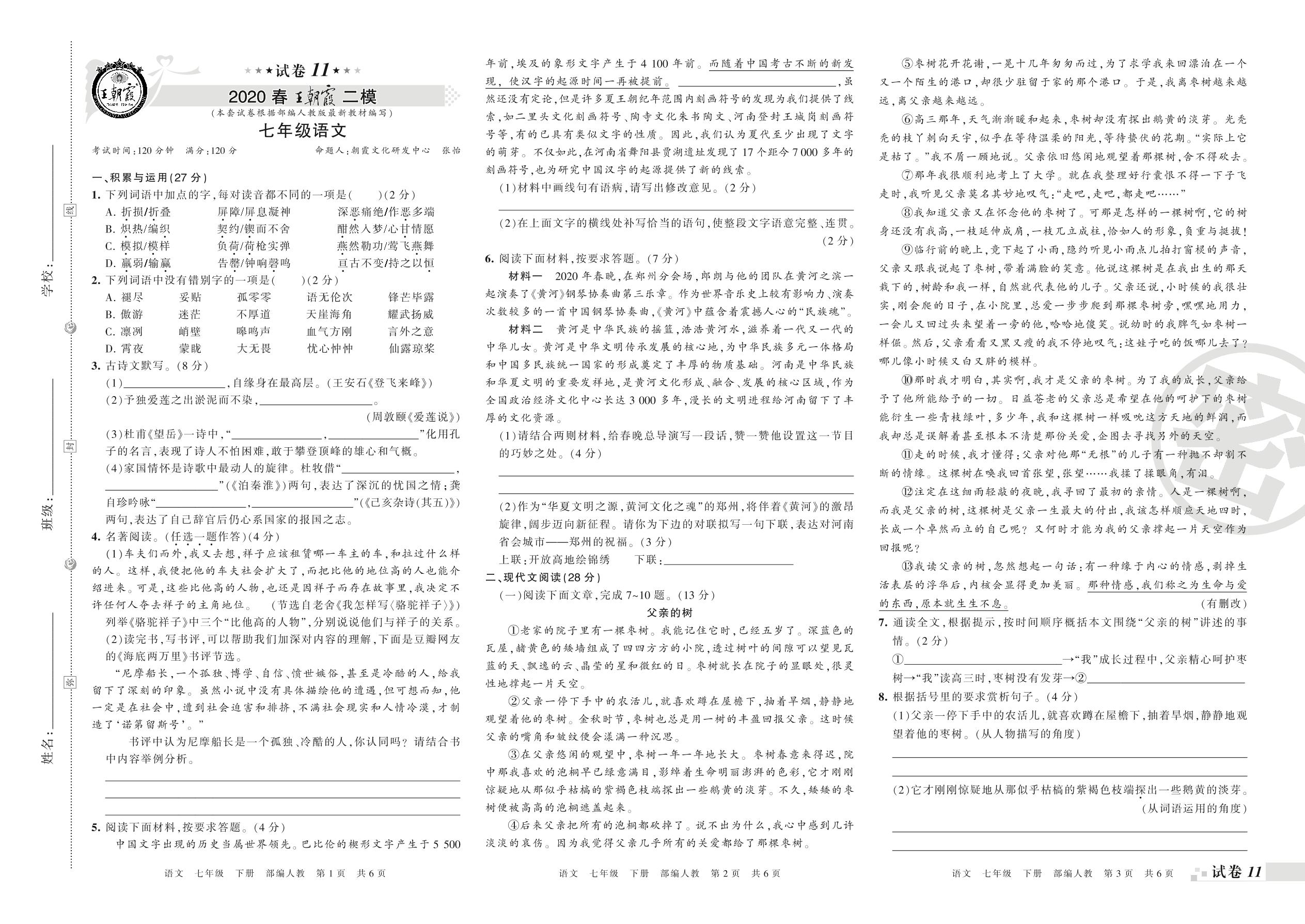 王朝霞期末模拟卷七年级下册语文(人教版)_R21080225250【11】