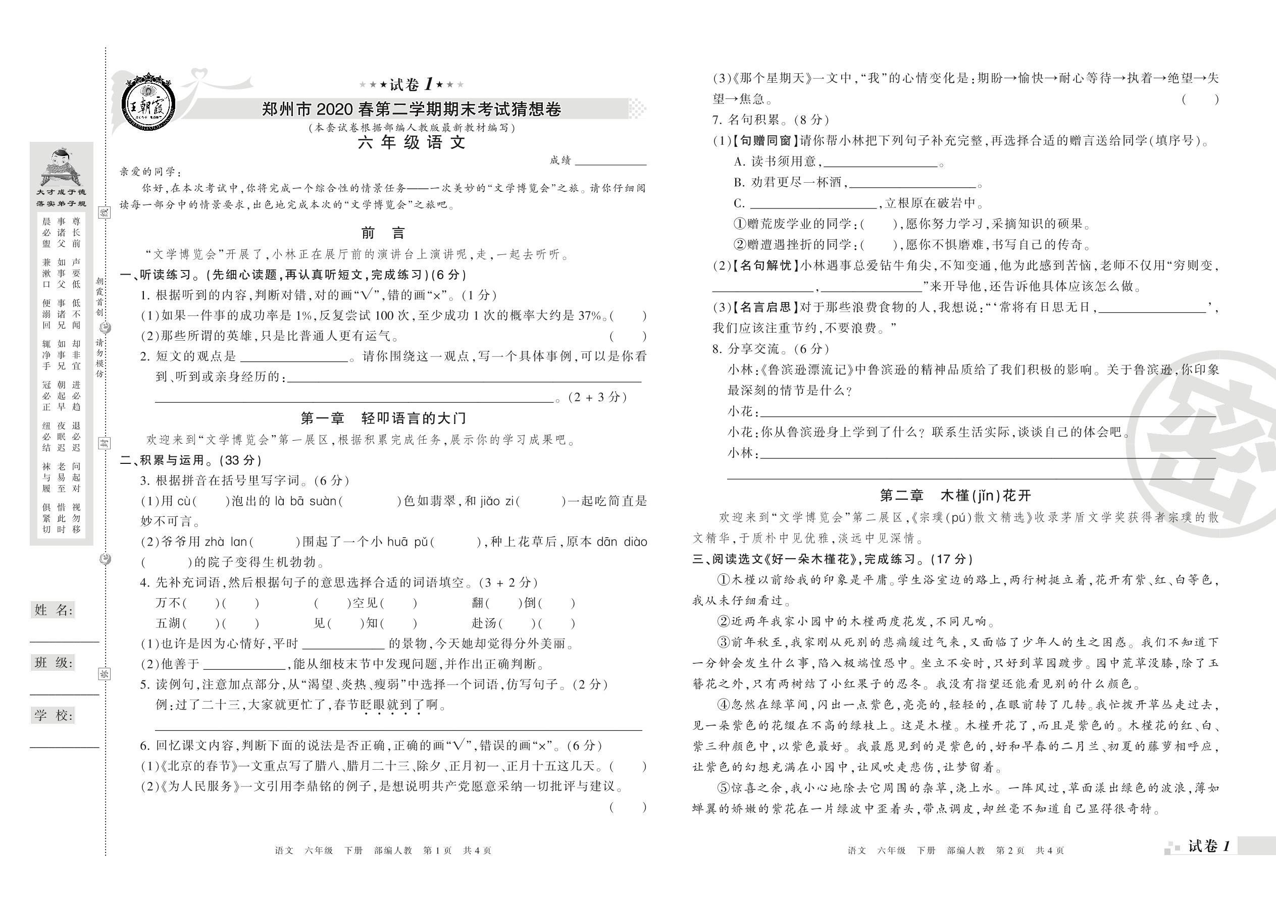 2018-2019学年第二学期郑州市猜想卷六年级语文试卷(人教版)【1】