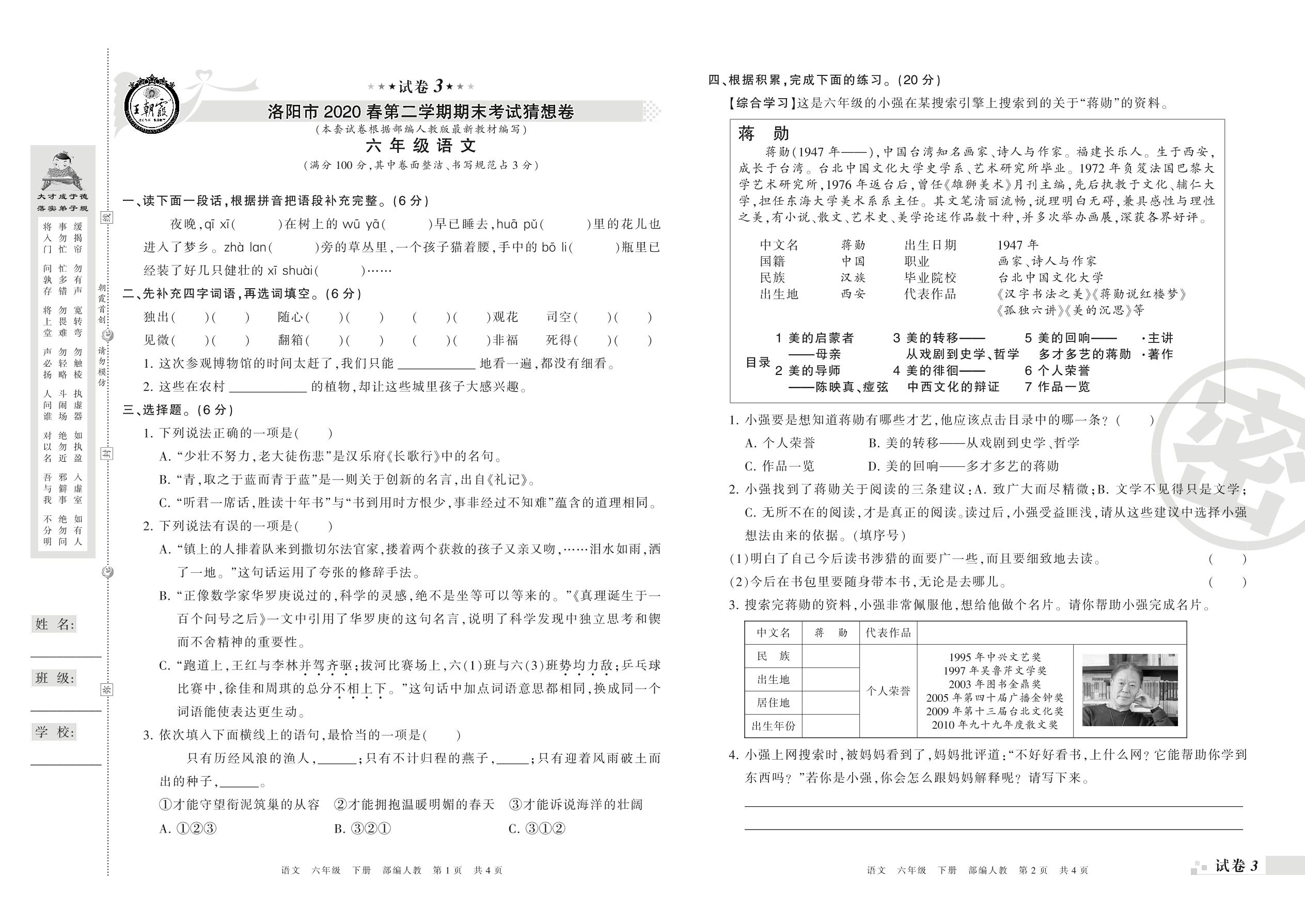 2018-2019学年第二学期洛阳市猜想卷六年级语文试卷(人教版)【3】