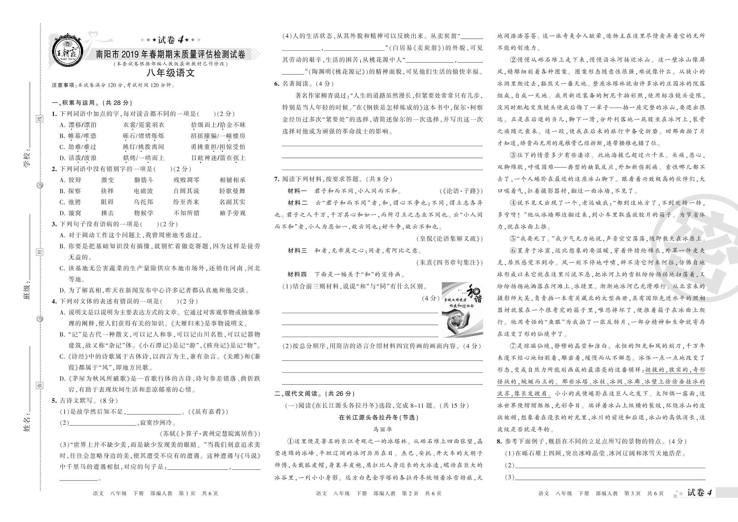 2018-2019学年第二学期南阳市八年级语文试卷(人教版)【4】