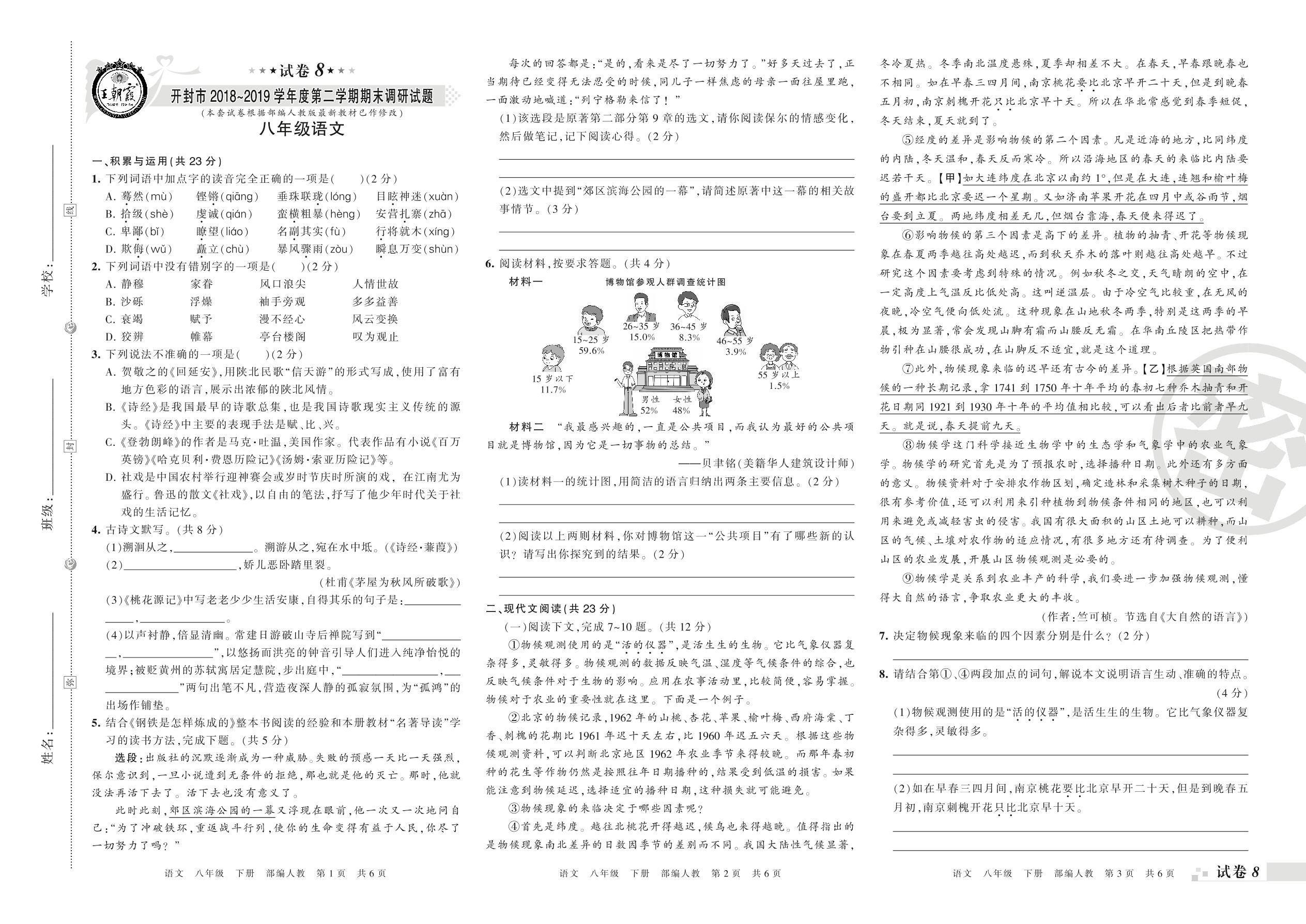 2018-2019学年第二学期开封市八年级语文试卷(人教版)【8】
