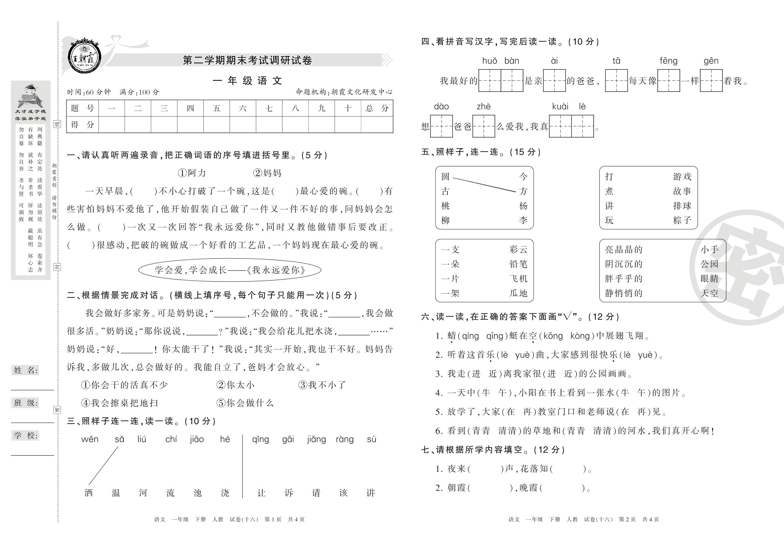 王朝霞期末调研卷一年级下册语文(人教版)_R210731183748【16】