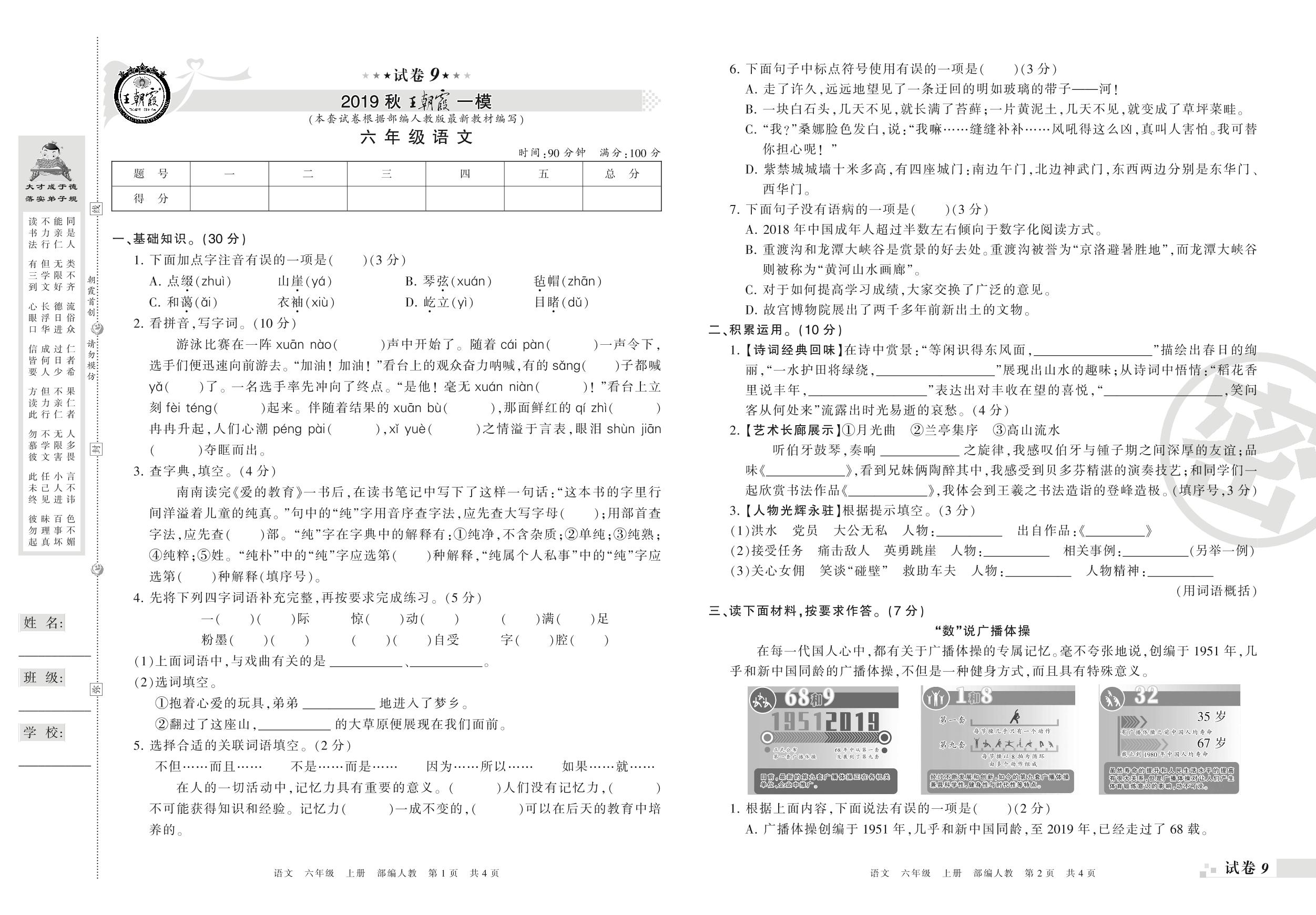 王朝霞期末模拟卷六年级上册语文(人教版)_R21080225728【9】