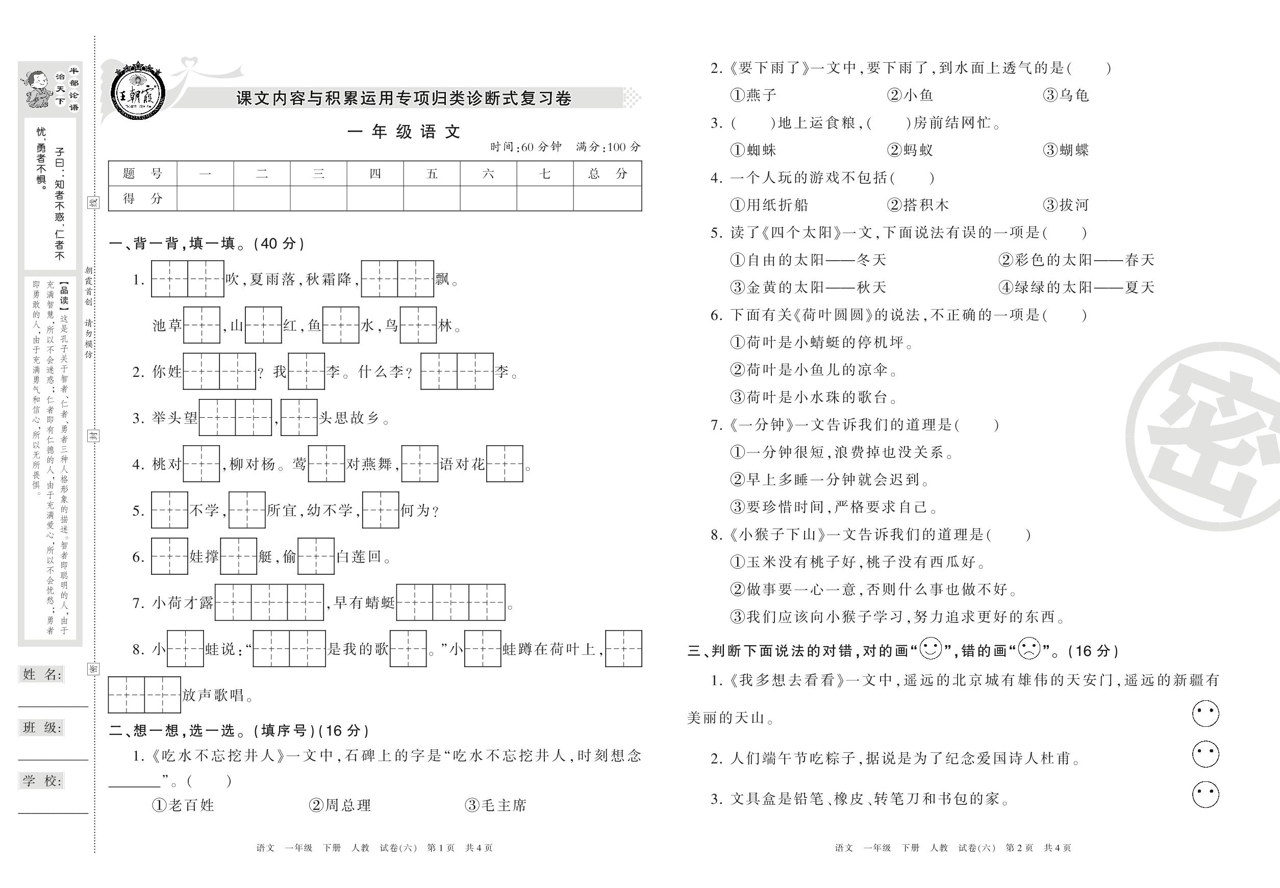 王朝霞期末专项卷一年级下册语文(人教版)_R210731183753【6】