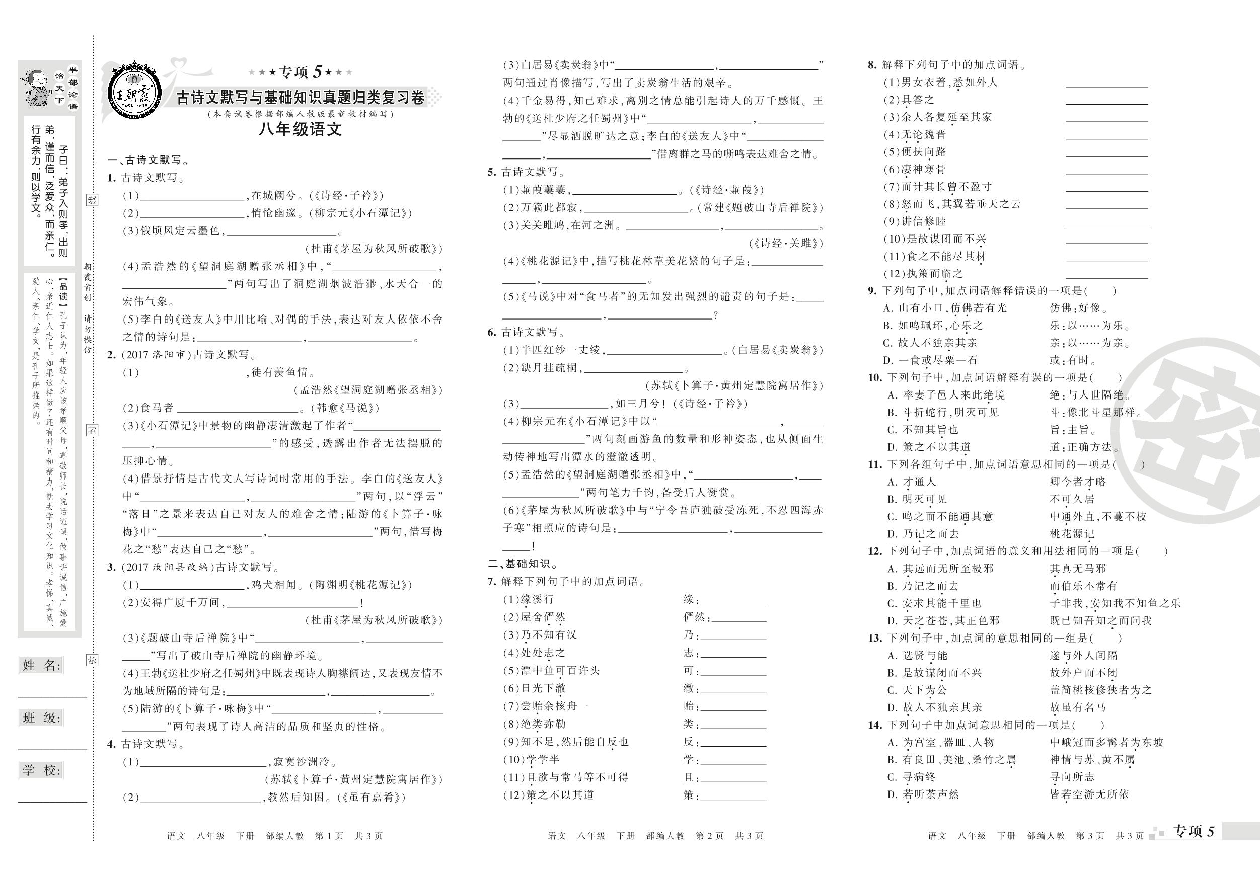 八年级语文人教版下册专项卷