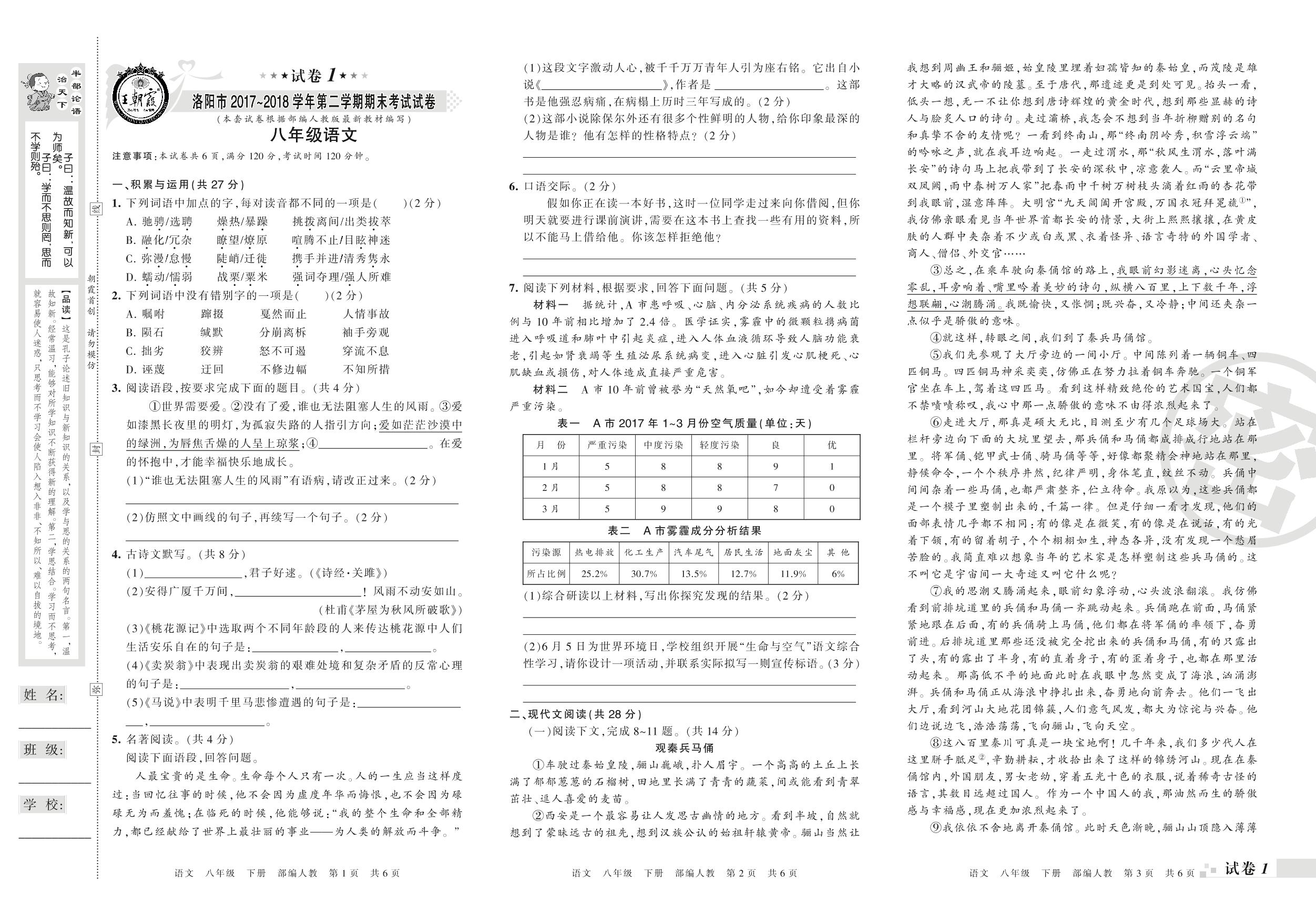 2017-2018学年第二学期洛阳市八年级语文试卷(人教版)【1】