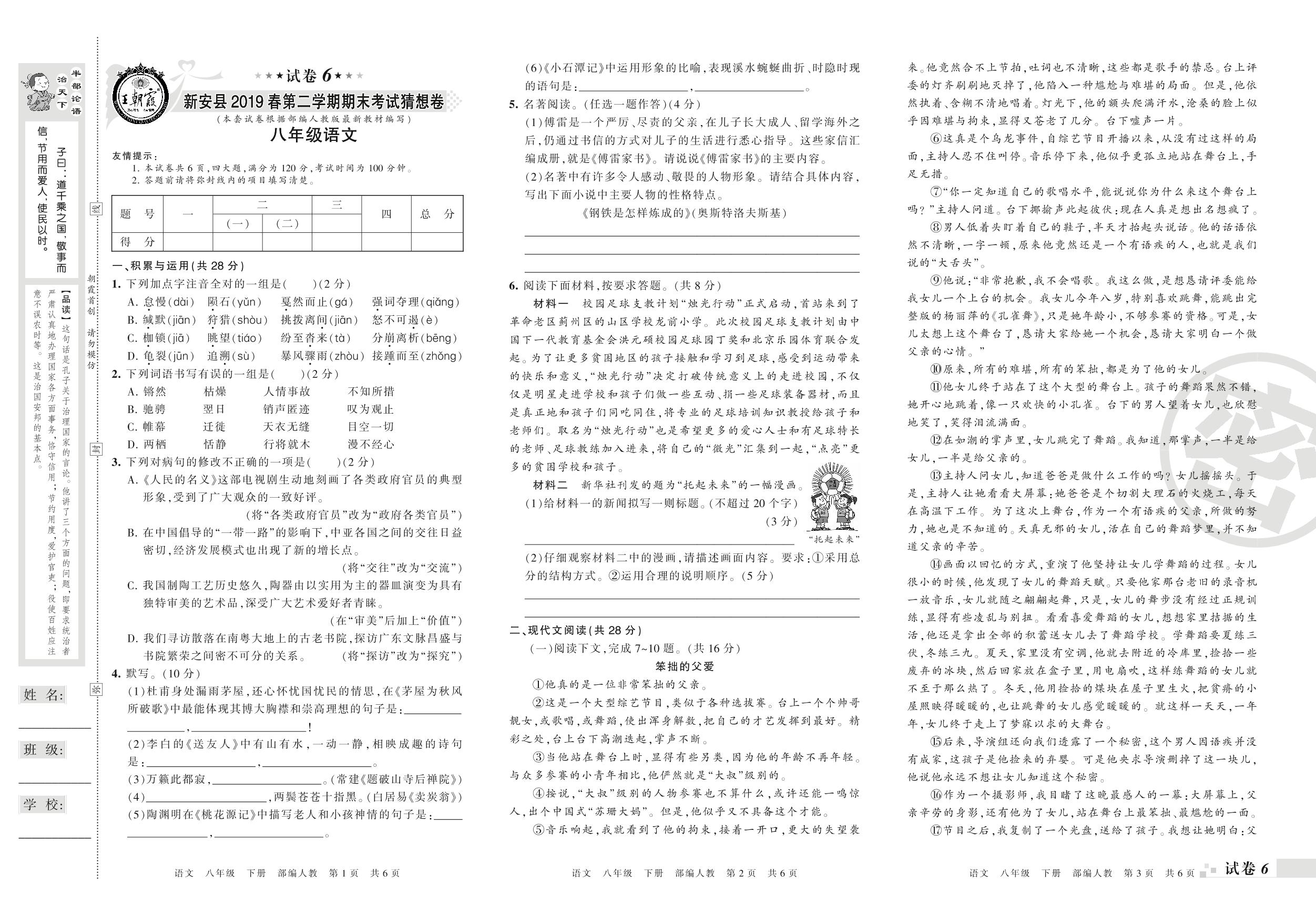 2018-2019学年第二学期洛阳市新安县猜想卷八年级语文试卷(人教版)【6】