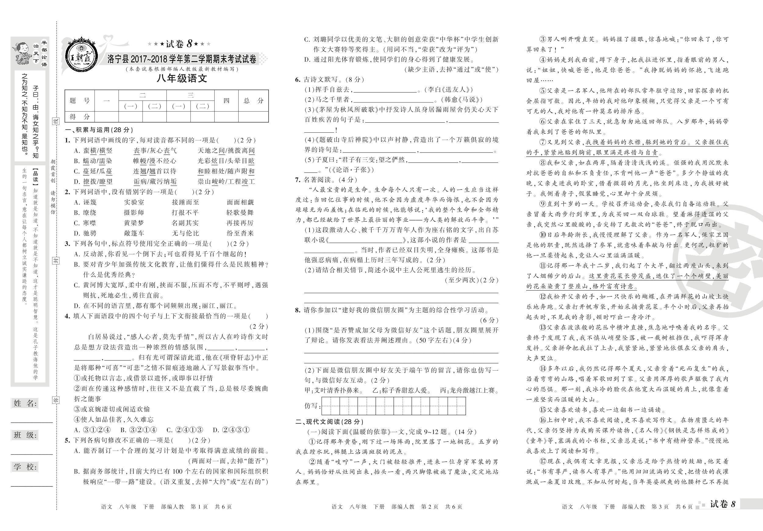 2017-2018学年第二学期洛阳市洛宁县八年级语文试卷(人教版)【8】