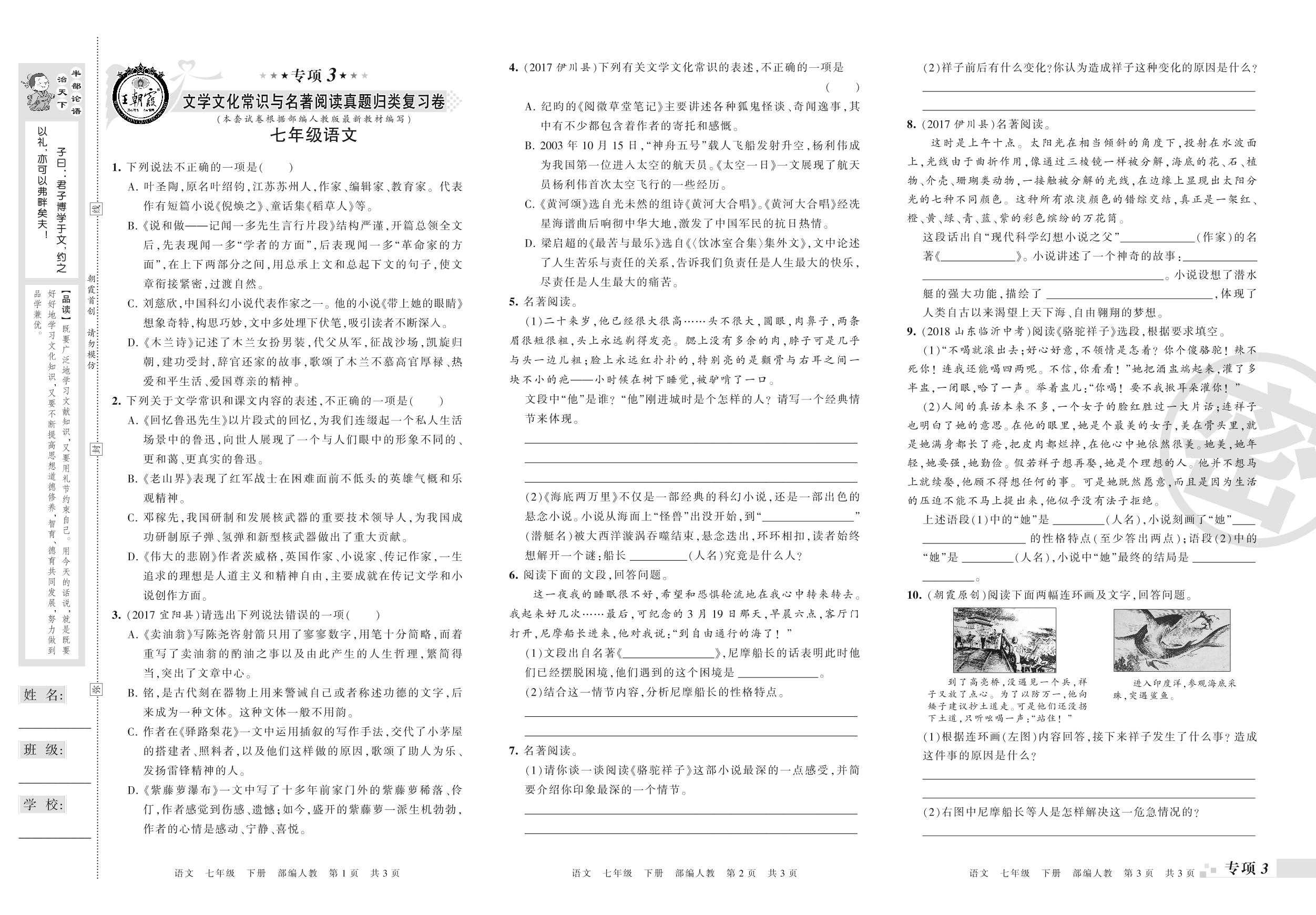王朝霞期末专项卷——文学文化常识与名著阅读、综合性学习真题归类复习卷七年级下册语文(人教版)_R21080230017【0】