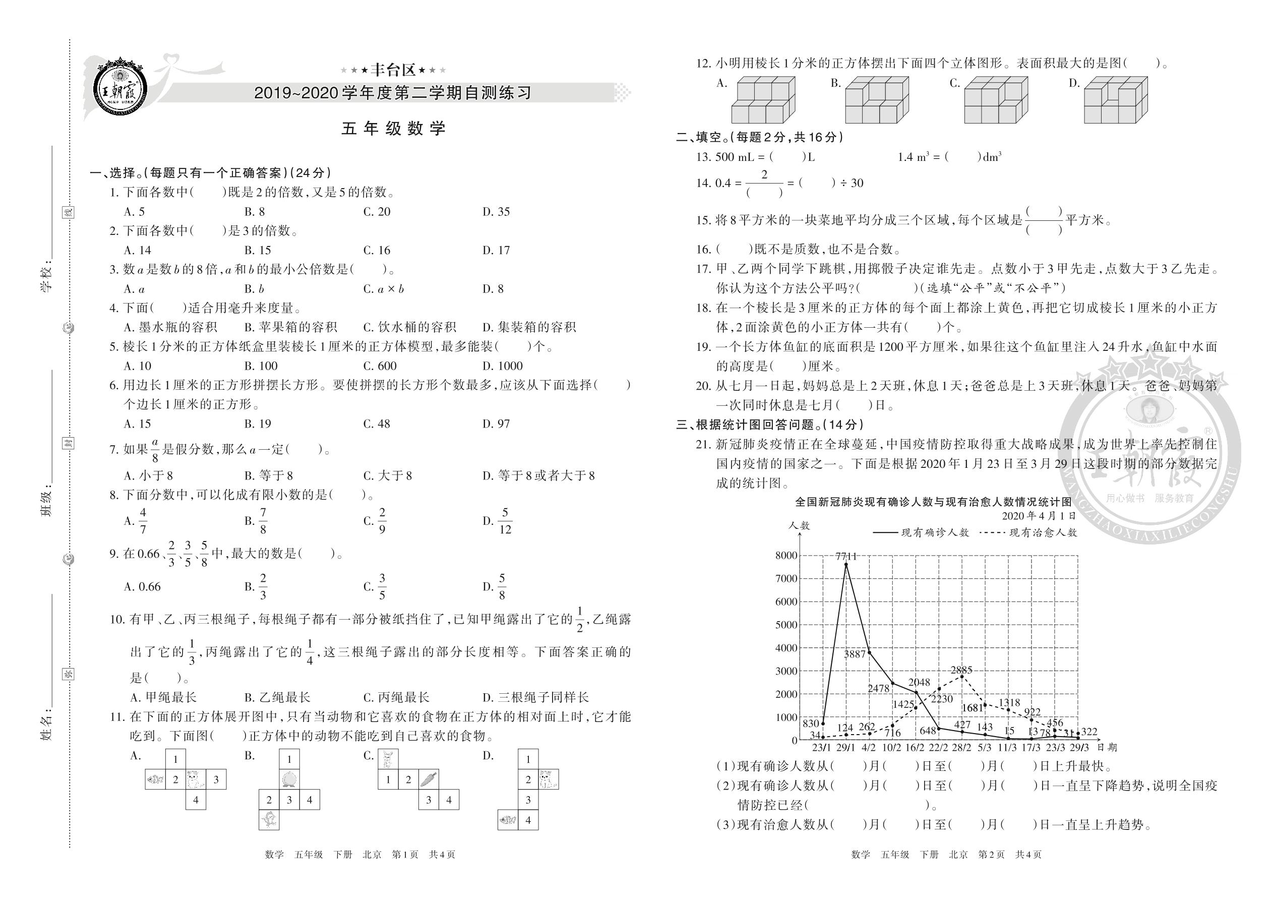 丰台区2019~2020学年度第二学期自测练习五年级数学(北京版)