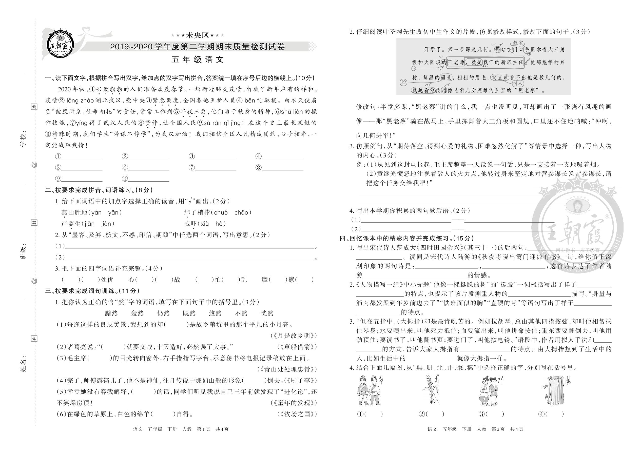 五年级语文人教版下册期末卷