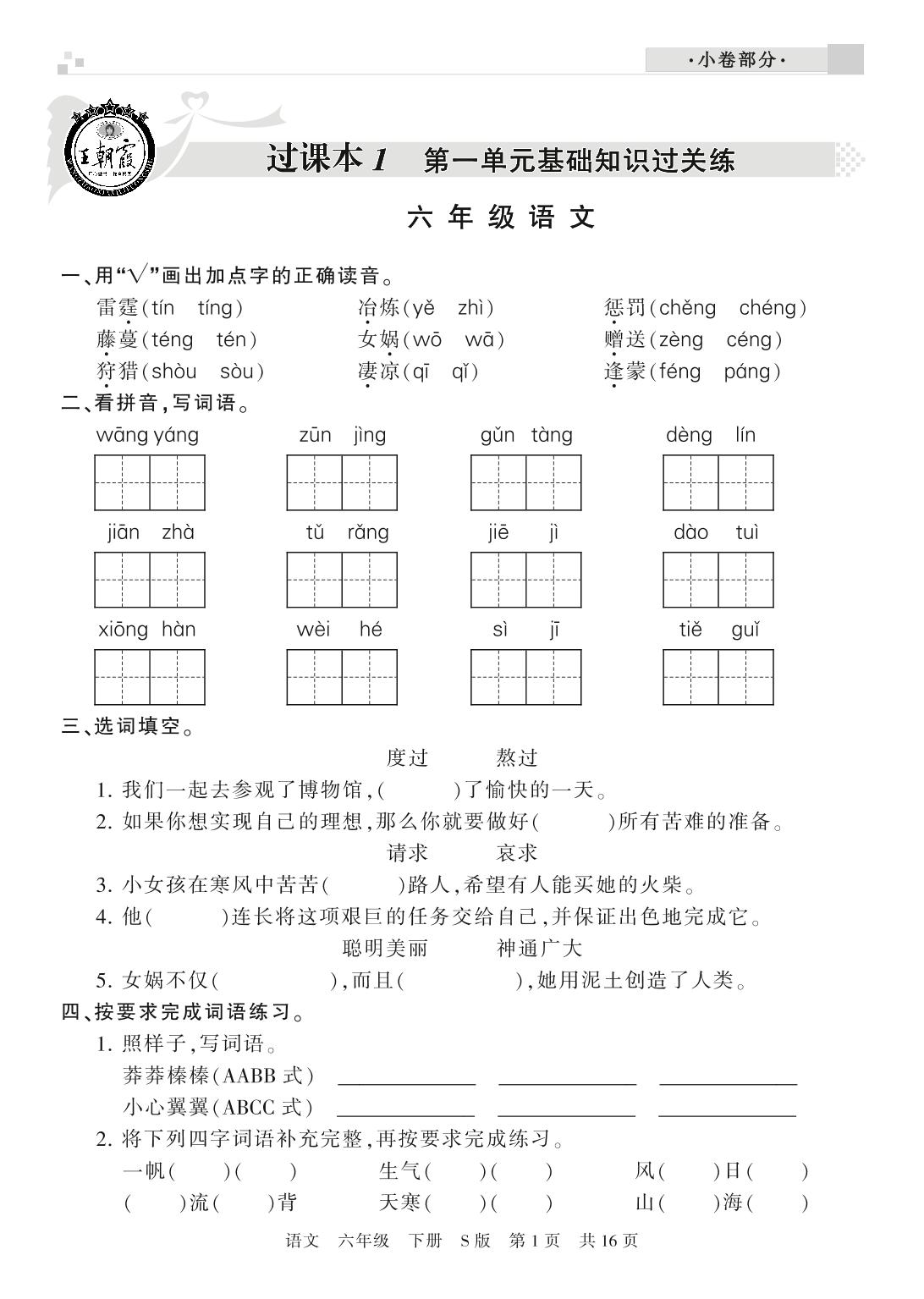 王朝霞期末小卷六年级下册语文(S版)_R21080230230【0】