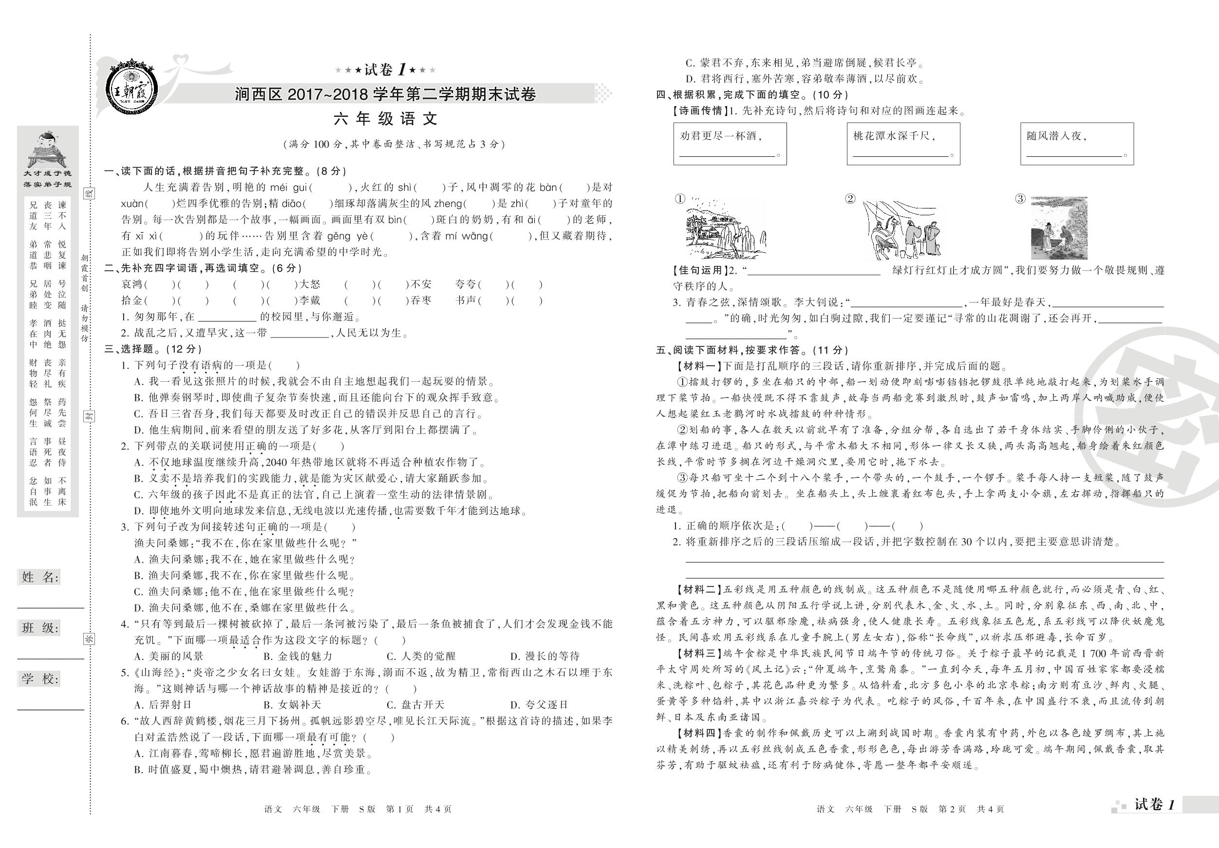 2017-2018学年第二学期洛阳市涧西区六年级语文试卷(S版)_R21080230246【1】