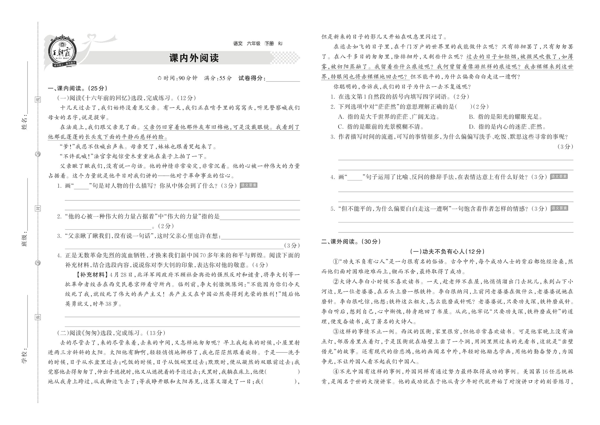 【易考突破】人教版·六年级·语文课内外阅读专项训练