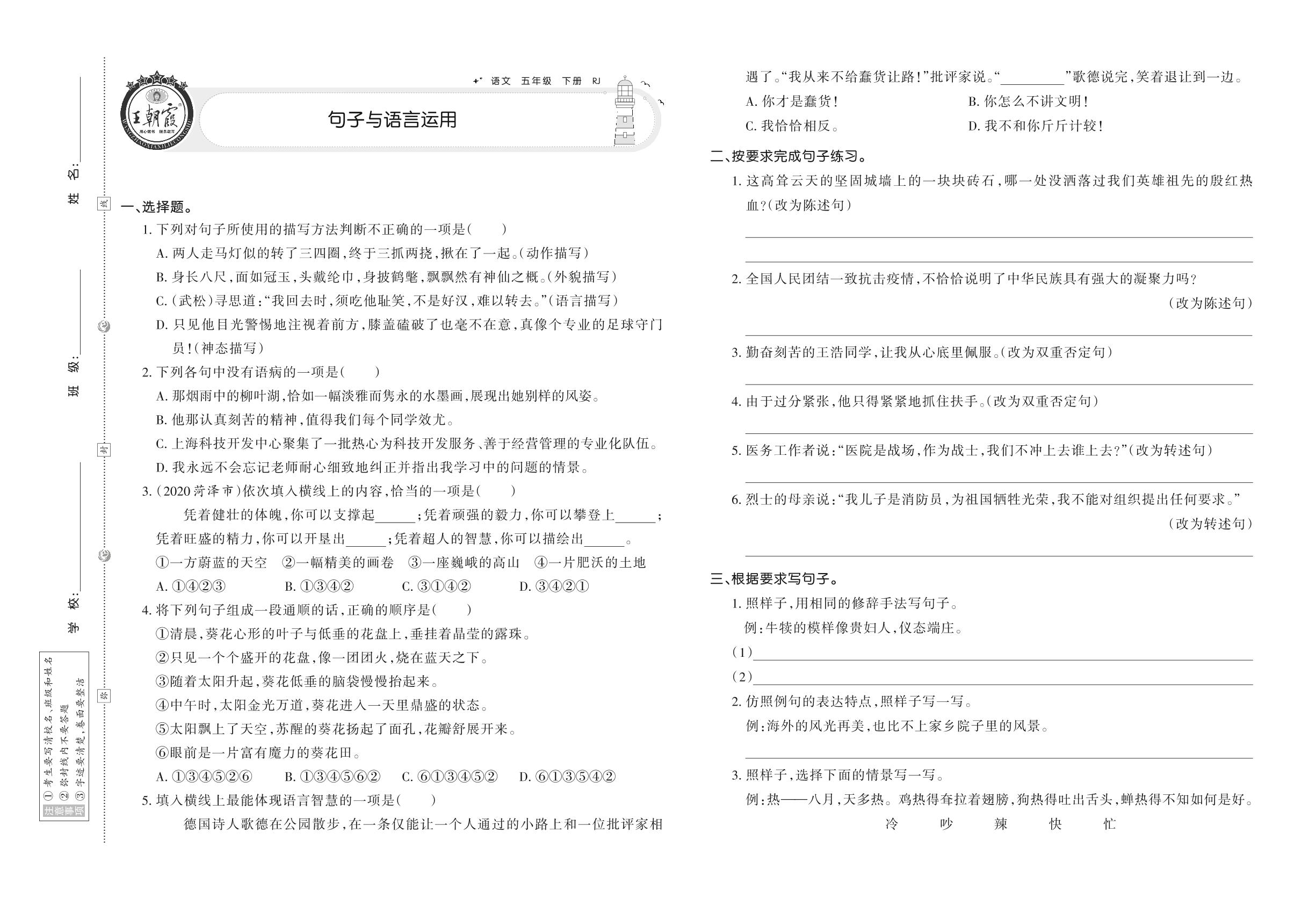【易考突破】人教版·五年级·语文句子、语言运用专项训练