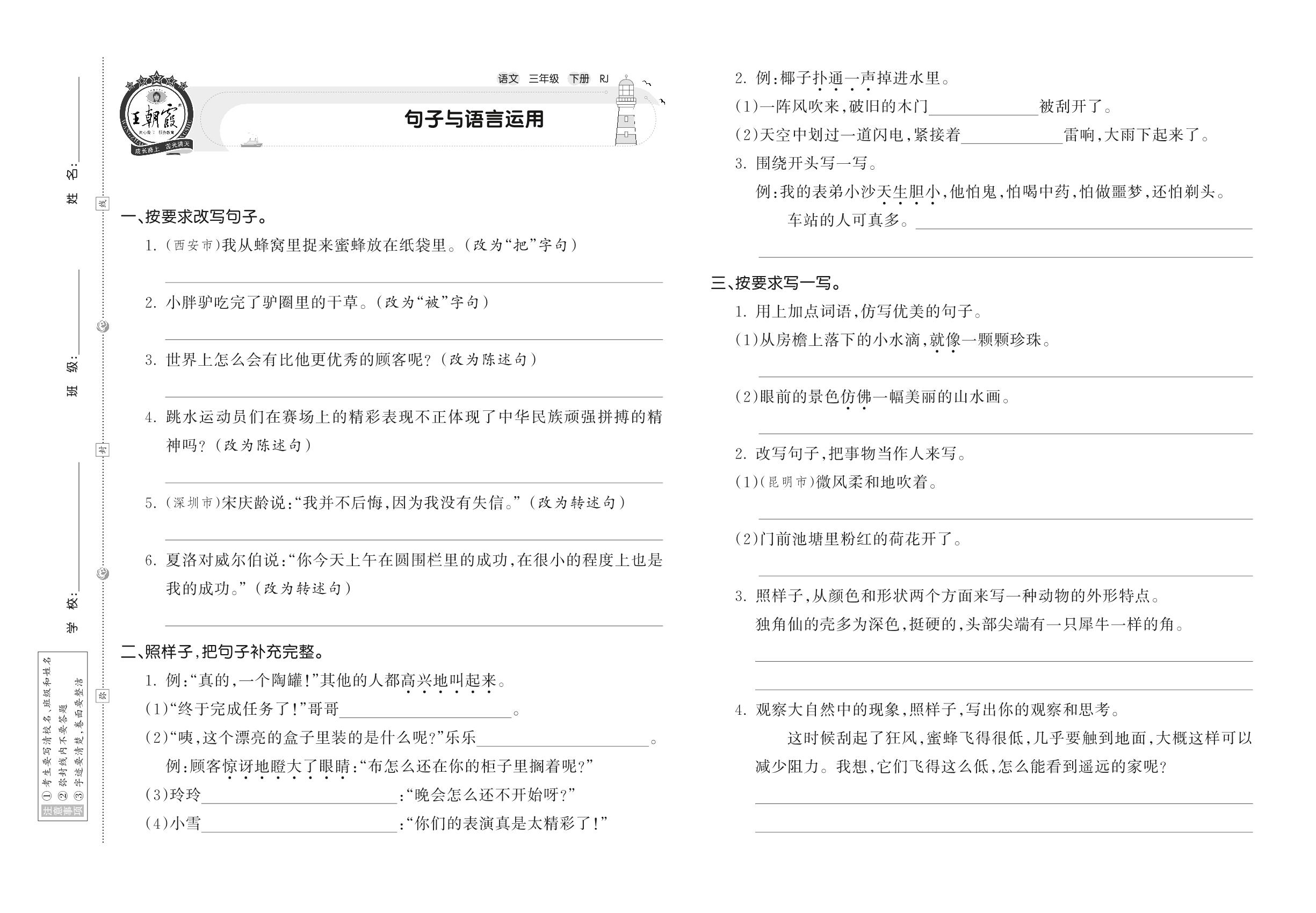 【易考突破】人教版·三年级·语文句子、语言运用专项训练