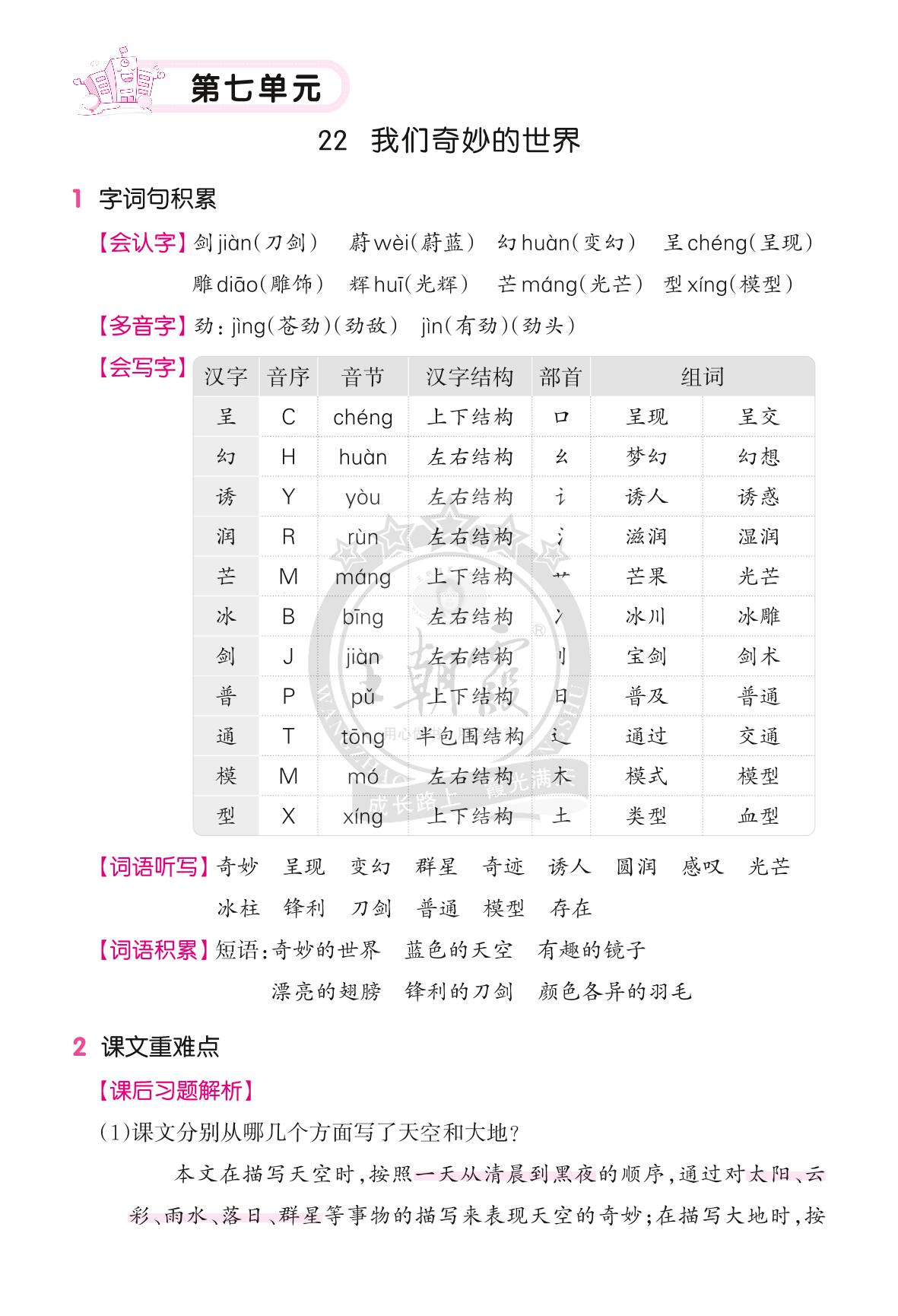 人教版·三年级·语文字词句段、课后习题、语文园地知识点梳理(第七单元)