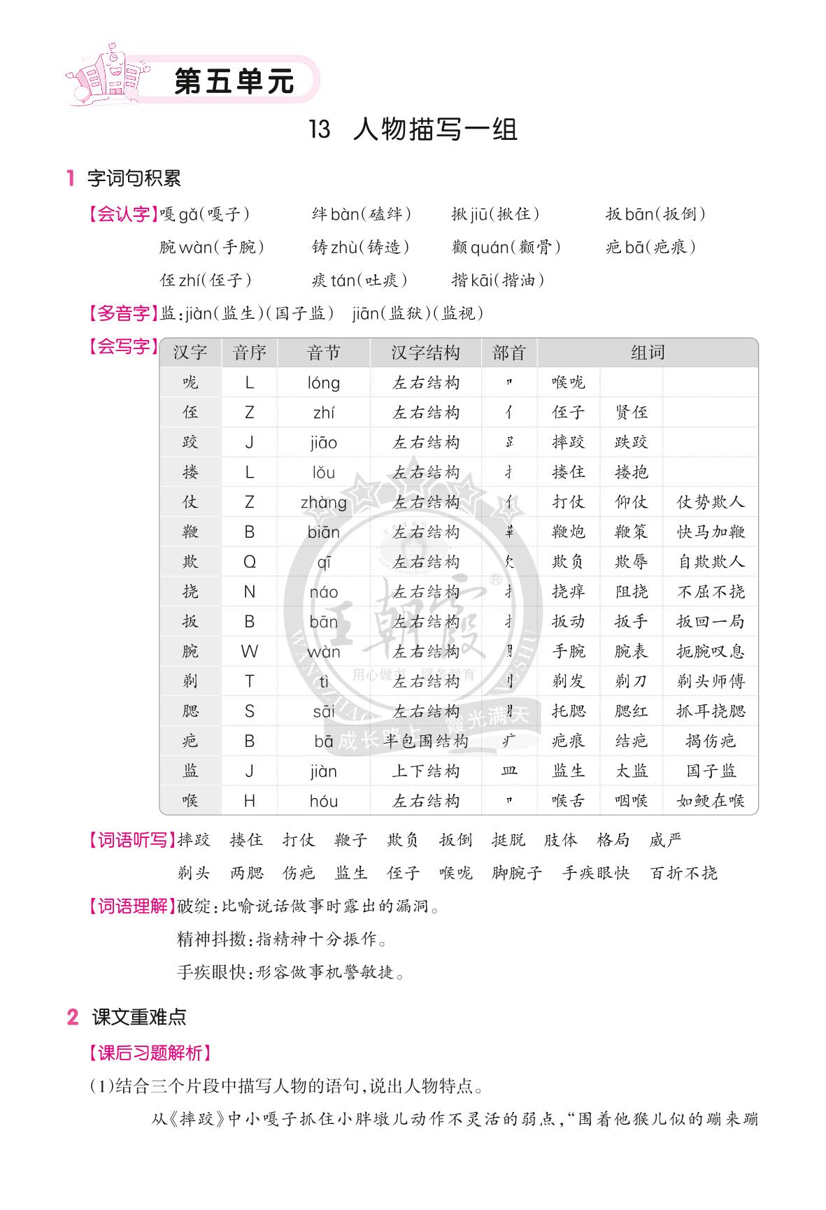 人教版·五年级·语文字词句段、课后习题、语文园地知识点梳理(第五单元)
