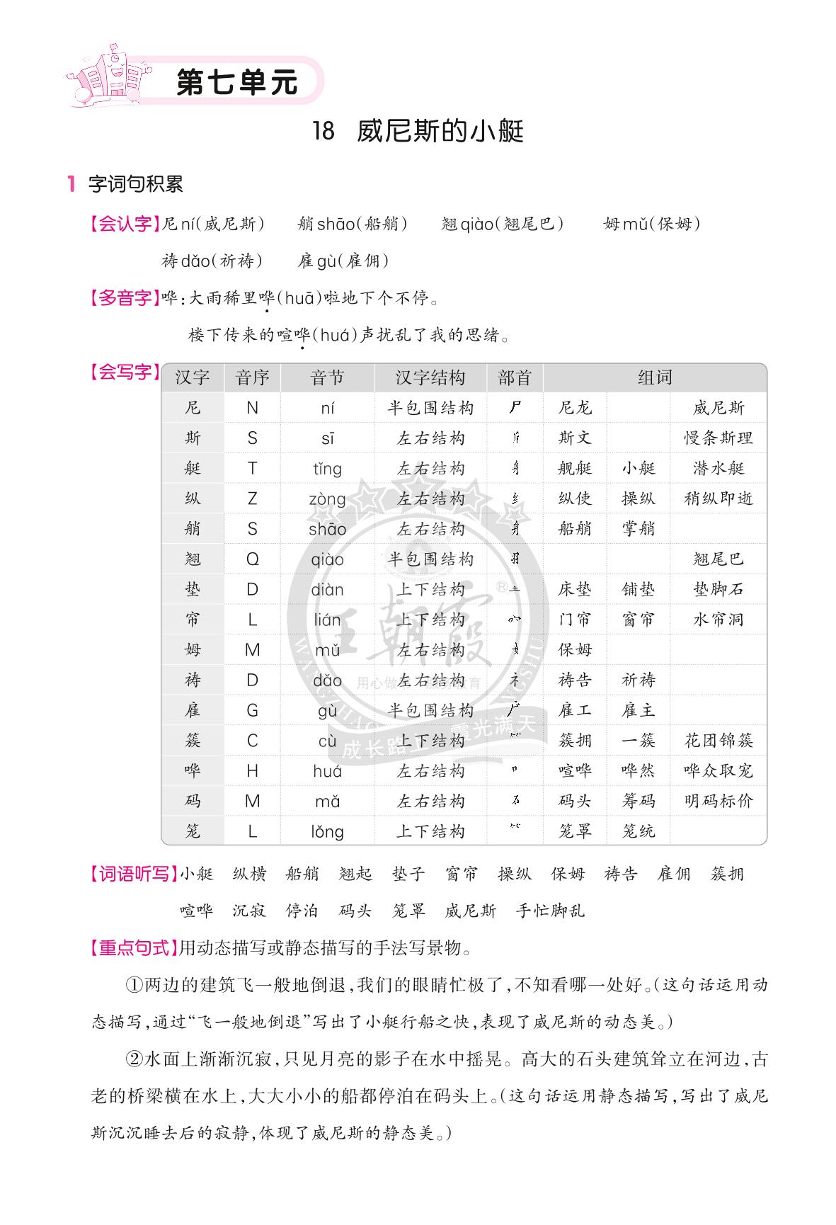 人教版·五年级·语文字词句段、课后习题、语文园地知识点梳理(第七单元)