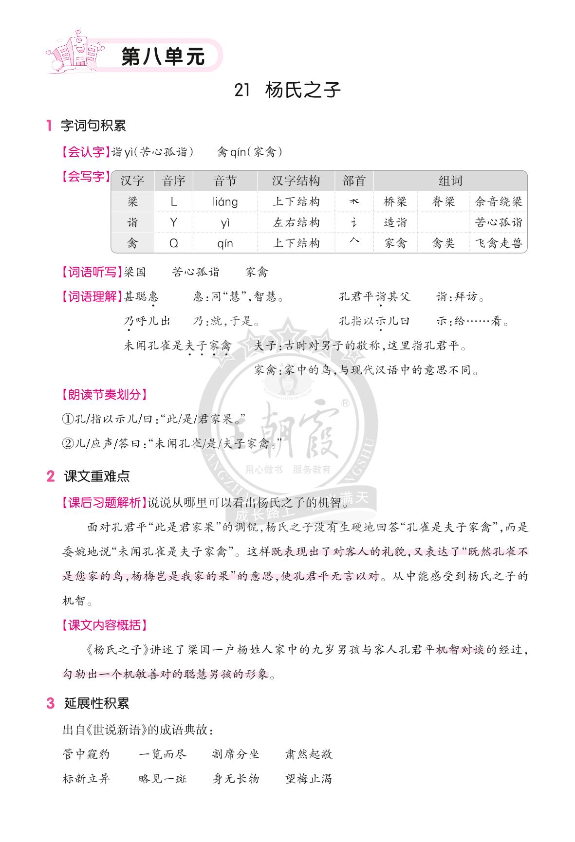 人教版·五年级·语文字词句段、课后习题、语文园地知识点梳理(第八单元)