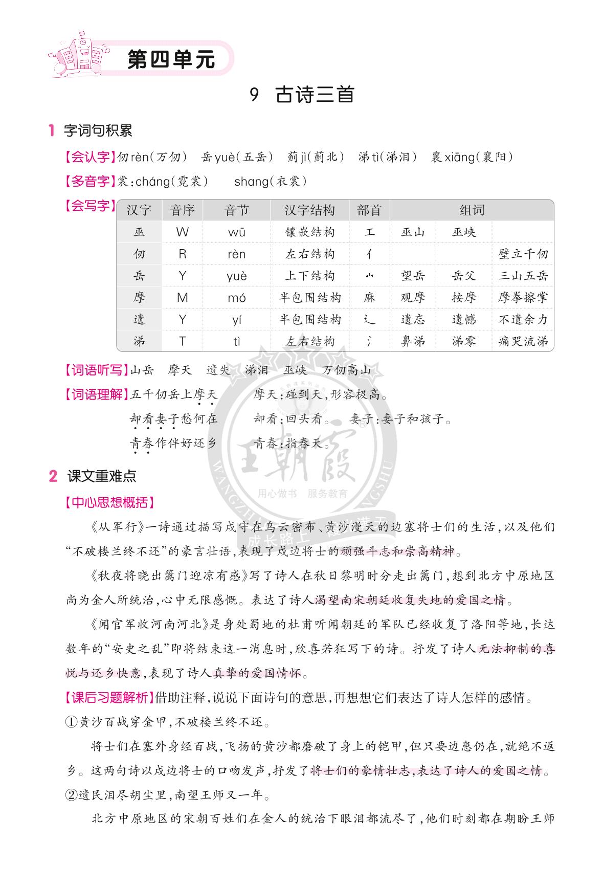 人教版·五年级·语文字词句段、课后习题语文园地知识点梳理(第四单元)