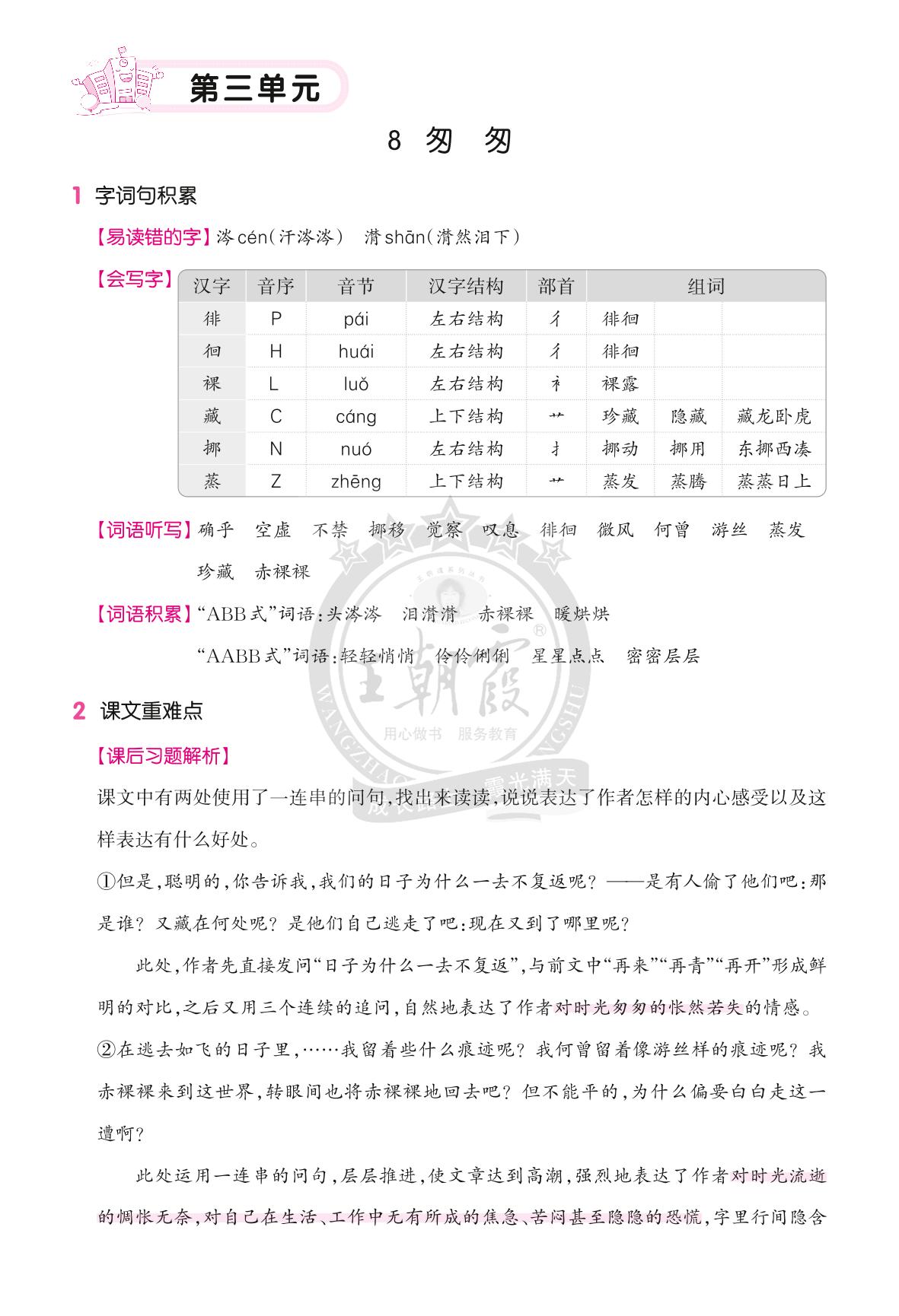 人教版·六年级·语文字词句段、课后习题知识点梳理(第三单元)