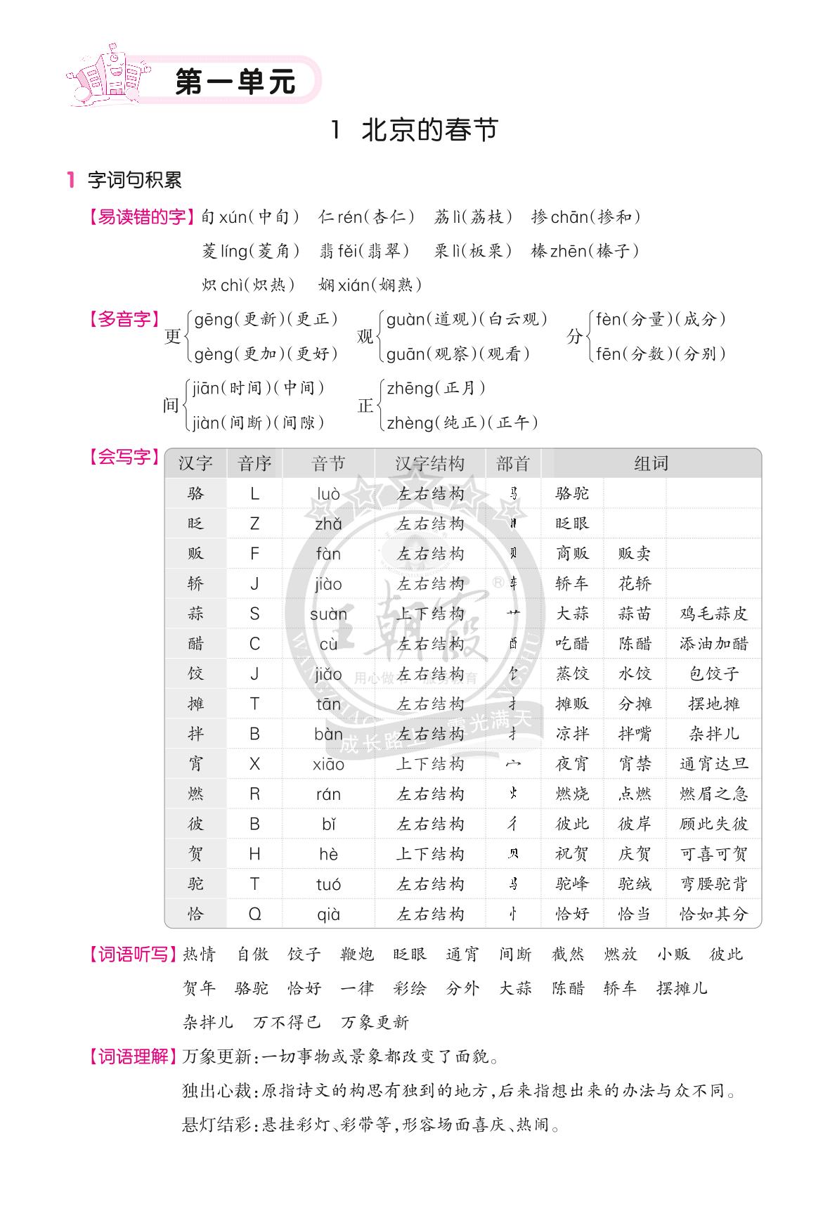 人教版·六年级·语文字词句段、课后习题、语文园地知识点梳理(第一单元)