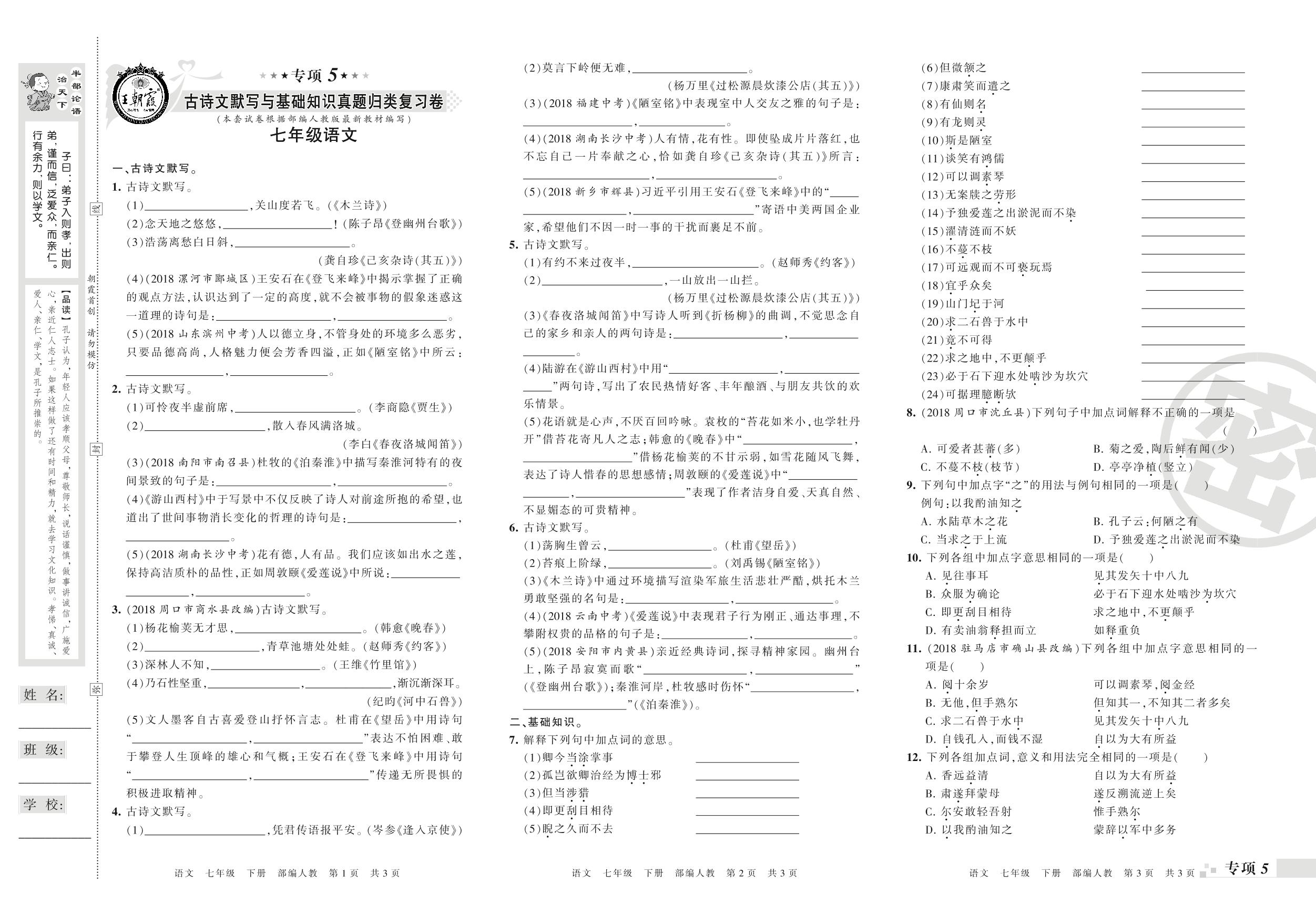 七年级语文人教版下册专项卷
