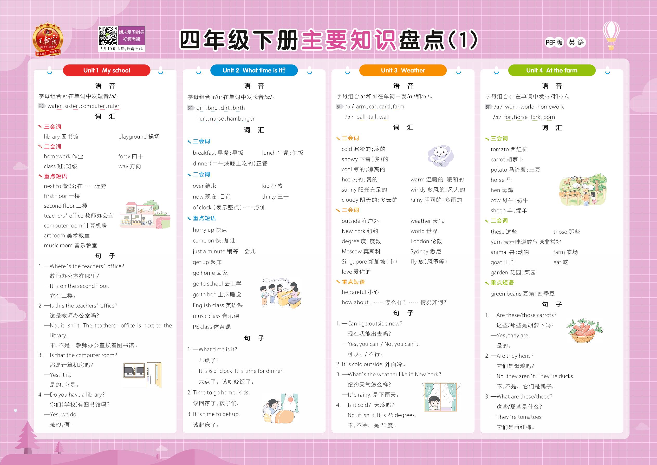 四年级英语人教PEP版(三起始)下册知识梳理