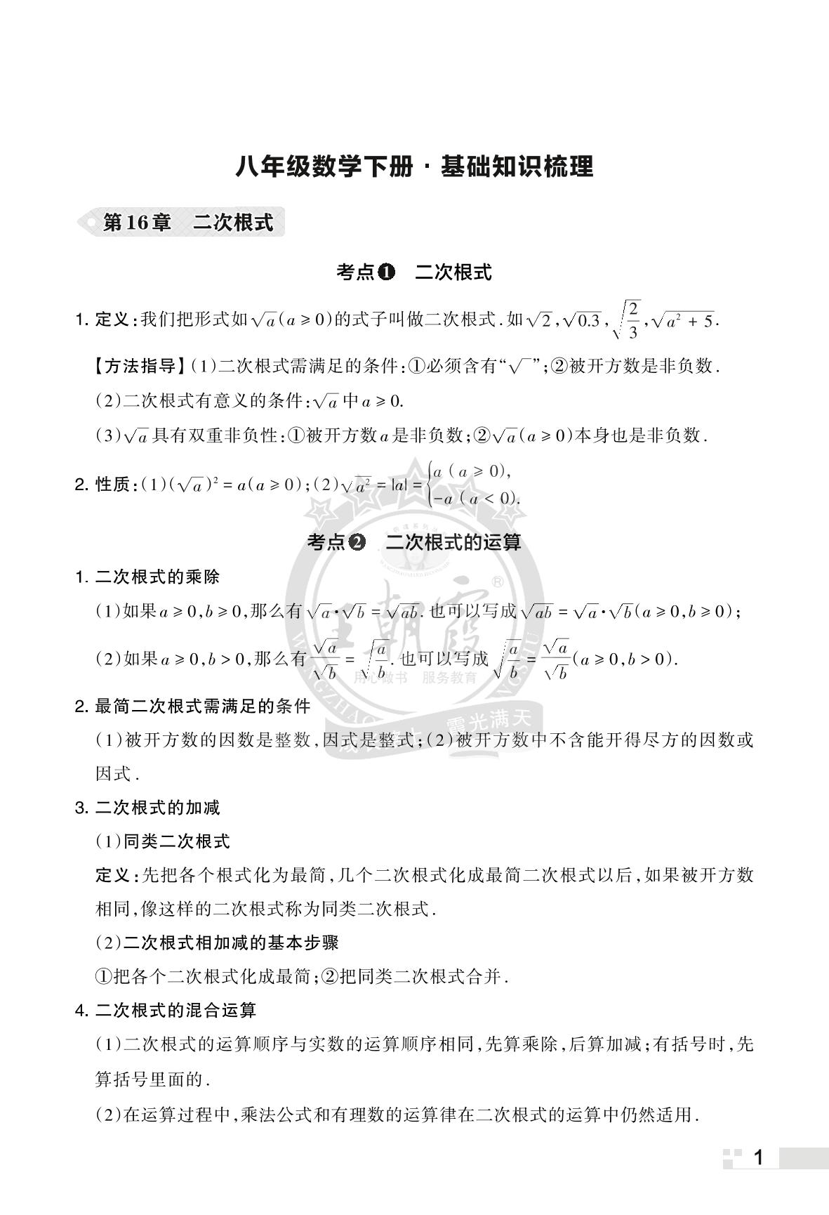 沪科版·数学·八年级基础知识点梳理