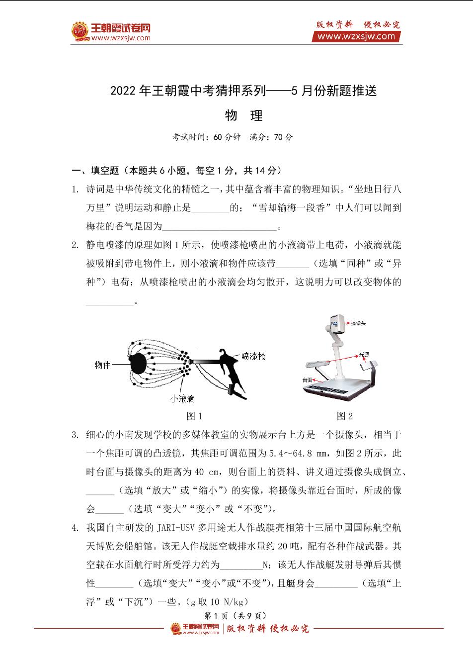 【物理】2022年王朝霞中考猜押系列——5月份新题推送