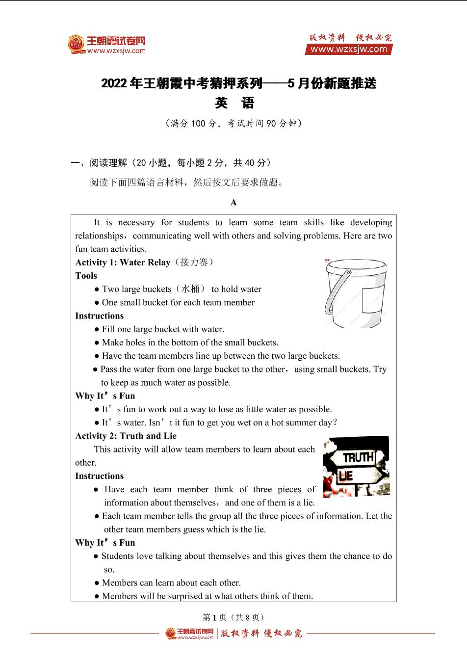 【英语】2022年王朝霞中考猜押系列——5月份新题推送
